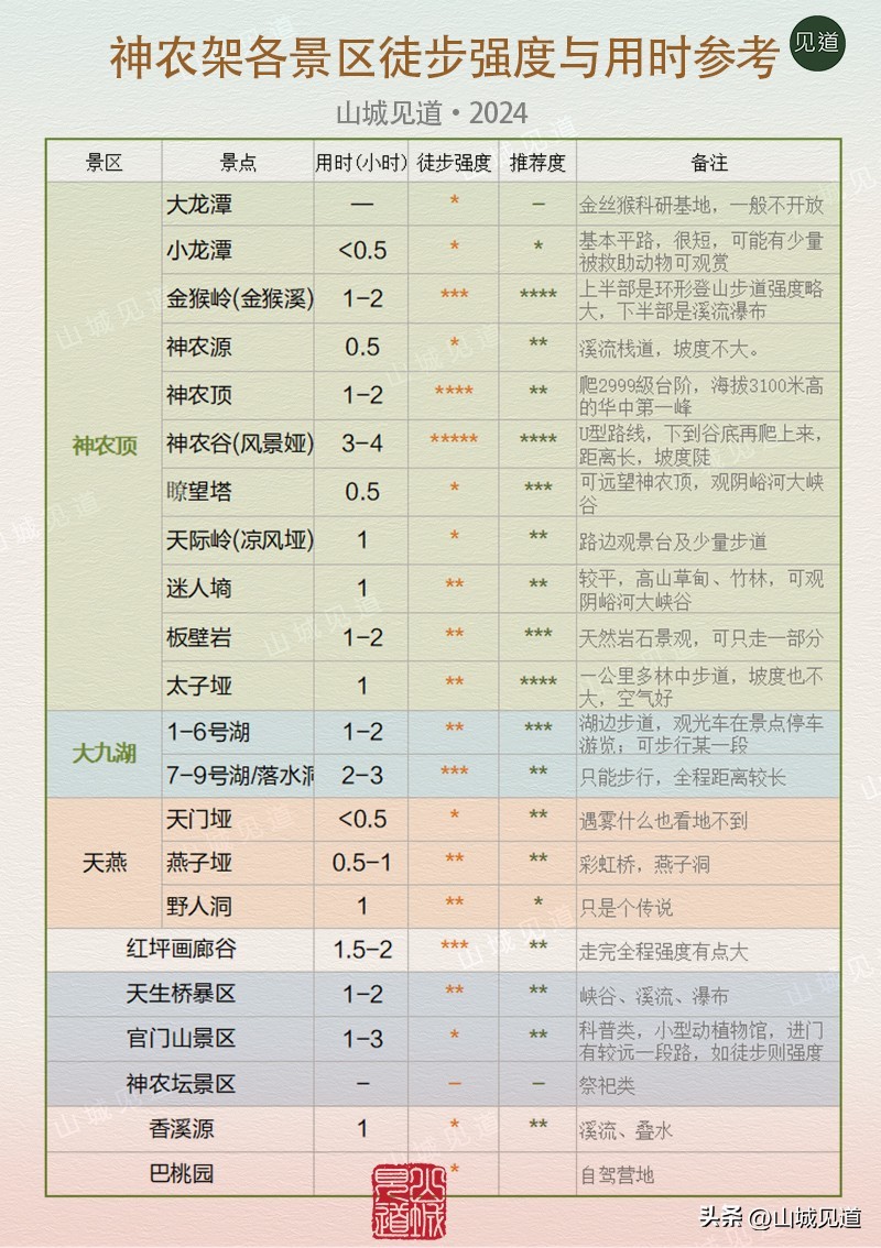 如果有两天以上时间,可把中间一天安排游览主景区神农顶,前后几天根据时间多少,安排其它小景区,灵活调整。