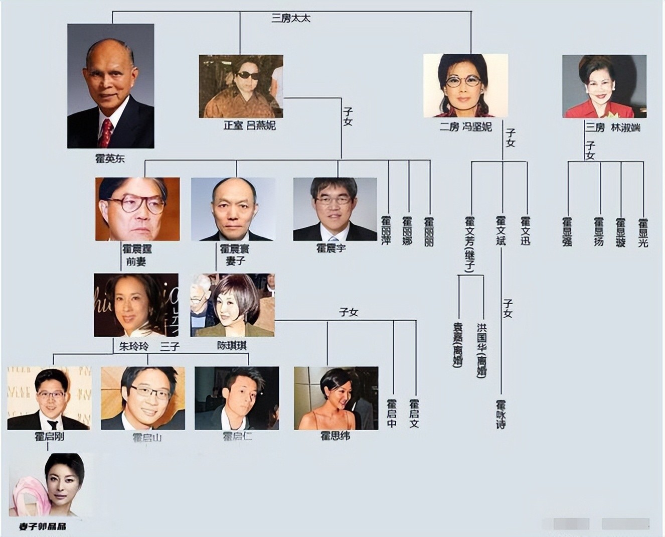 其中,跳水皇后郭晶晶正是嫁给了长子霍震霆的儿子霍启刚。