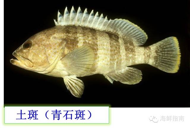 青石斑常被误认为是青斑,而将两者混为一谈。青石斑俗称土斑,体背棕褐色,腹侧浅褐色,体色可随环境变化而改变。头部及体侧下半部散布着橘黄色斑点,其余部位分布灰白色小点。体侧有5条深褐色垂直条纹,第1和2条紧相邻,第3和4条位于背鳍与臀鳍之间,第5条位于尾柄上。各鳍均为灰褐色,背鳍和臀鳍边缘及尾鳍后缘有明显黄边。