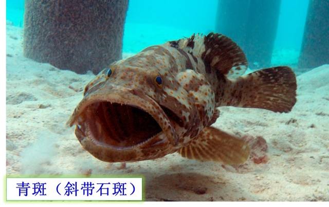 斜带石斑又称点带石斑,与马拉巴石斑的色泽和外形相似,常被混为同一种鱼,因其体色都呈青褐色俗称青斑。两者区别之处是前者斑点为红色,后者斑点为黑色,在台湾养殖界斜带石斑称为红点青斑,马拉巴石斑称为黑点青斑。只要水温等生态条件适宜,斜带石斑一年四季均能产卵,而马拉巴石斑产卵期较短,因此近年斜带石斑已取代马拉巴石斑成为福建和台湾最主要养殖品种。