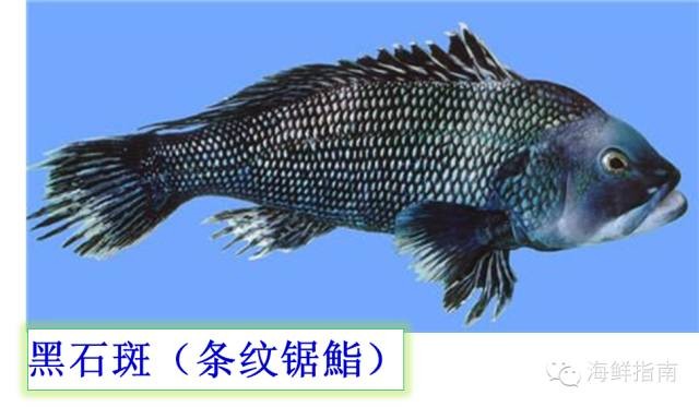条纹锯鮨周身排列整齐的栉鳞,体表呈烟灰色、褐色或蓝黑色,皮肤上有显著的菱形白色斑点。各鳍较大布满条纹和白色点状色块,鳍的边缘深绿或浅绿色。成鱼头部有明显的倒“八”字翡翠斑纹,身体两侧也有翡翠条斑。黑石斑生长速度快、抗逆能力强、出肉率较高,据记载最大个体长2m,重176kg。其适宜水温为5-30℃,生长的最适温度17-25℃。