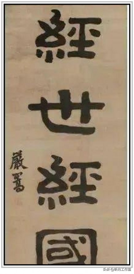 明代书法家严嵩《经世经国》隶书立幅,作为榜书,体现了其书法艺术的独特魅力,笔力雄浑,结构严谨,是书法艺术的佳作。严嵩,明代书法家,其书法在嘉靖年间被誉为珍品。当时著名书法家如杨慎、田汝籽、湛若水等对严嵩作品推崇备至,认为其隶书、榜书等作品均展现出高超的书法技艺。