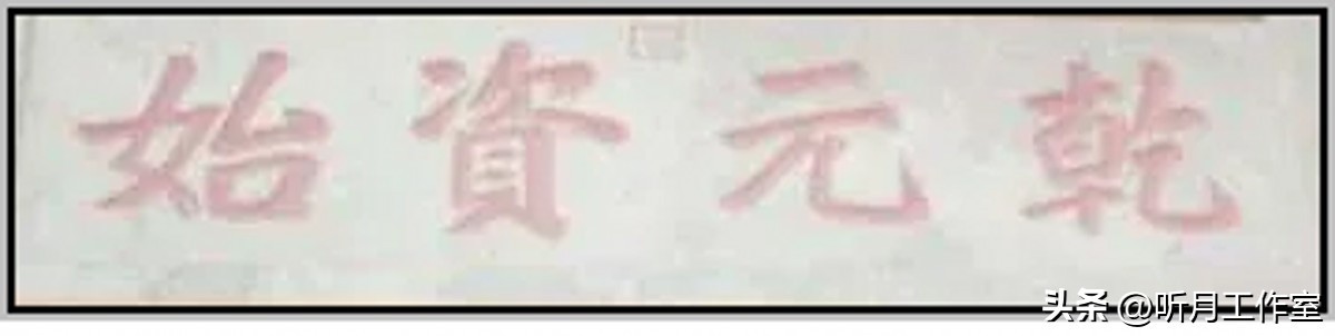 明代书法家严嵩《楷书乾元资始》榜书,横幅,楷书。严嵩虽被列为明代六大“奸臣”之一,但书法造诣深厚,堪称大家。其书法作品,如“六必居”等榜书,笔力雄奇,字体丰伟,为后人所称赞。后人因其书法水平高超而难以超越,故很多牌匾依然悬挂,流传至今。