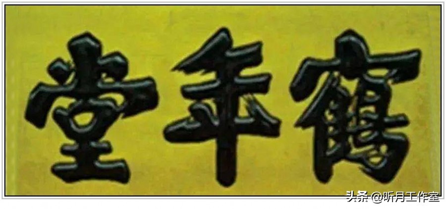明代书法家严嵩《楷书鹤年堂》为榜书,横幅,楷书,匾额原为其花园内厅堂堂名,后流入民间被鹤年堂药店收购。严嵩,明代进士,曾任大学士,擅长青词,受皇帝宠信。其政治生涯复杂,虽文采斐然,但因所作所为被后人诟病,被视为奸臣。“鹤年堂”匾额金体黑字,字体苍劲,笔锋端正,展现了严嵩的书法才华。