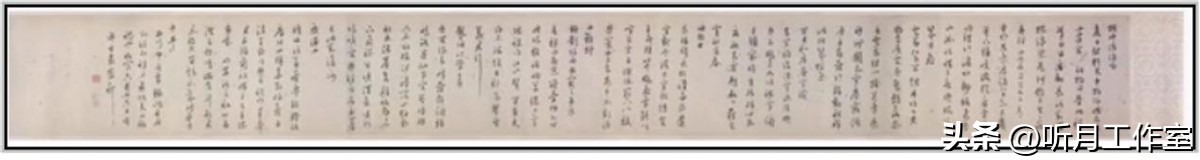 明代书法家严嵩《行书自书诗卷》纸本,行书,横幅手卷,北京故宫博物院藏。严嵩极善行草书,取法怀素《小草千字文》,善用圆笔,运腕灵活。笔画细腻灵动,因字赋形,展现出其深厚的书法功底。