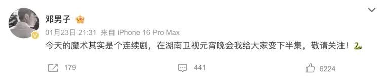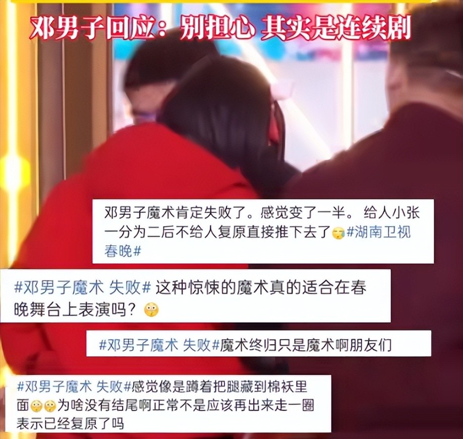 更令人难以理解的是,邓男子在微博上进一步补充说,这场魔术其实是一部“连续剧”,下集将在元宵晚会继续播出。