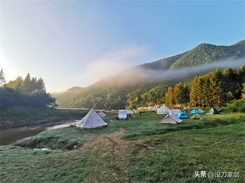 安吉小杭坑在浙江露营届声名远扬,而且景色堪称浙江颜值巅峰之所在,诸如“小瑞士”“小喀纳斯”“小伊犁”等美名。小杭坑有好多营地,其中1 号营地须购票方可入内,其他号营地可供露营过夜。喜欢露营的朋友,建议在2号营地露营过夜,营地提供自搭,也可拎包入住,小杭坑清晨的晨雾和日出确实震撼。