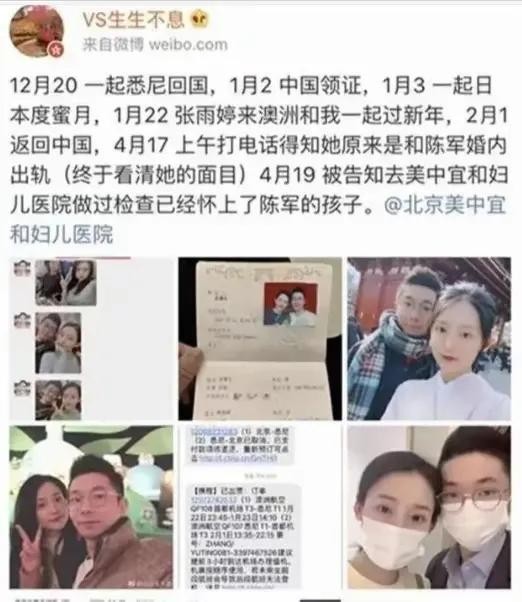 张雨婷在事件发生时,已经与史睿生在澳洲结过婚,并且史睿生的条件也相当不错。然而,张雨婷在进入绿地集团工作后,与陈军的接触日益频繁,最终两人突破了道德的底线。史睿生在发现妻子的出轨行为后,愤怒不已,他找到了张雨婷的出轨证据,包括聊天记录和亲密照片。面对丈夫的质问,张雨婷不仅没有悔过之心,反而倒打一耙,指责是丈夫的无能导致了她的出轨。