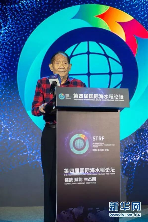 12月18日,袁隆平在论坛上发言。当日,由青岛海水稻研究发展中心主办的第四届国际海水稻论坛在三亚开幕。新华社发(张丽芸摄)