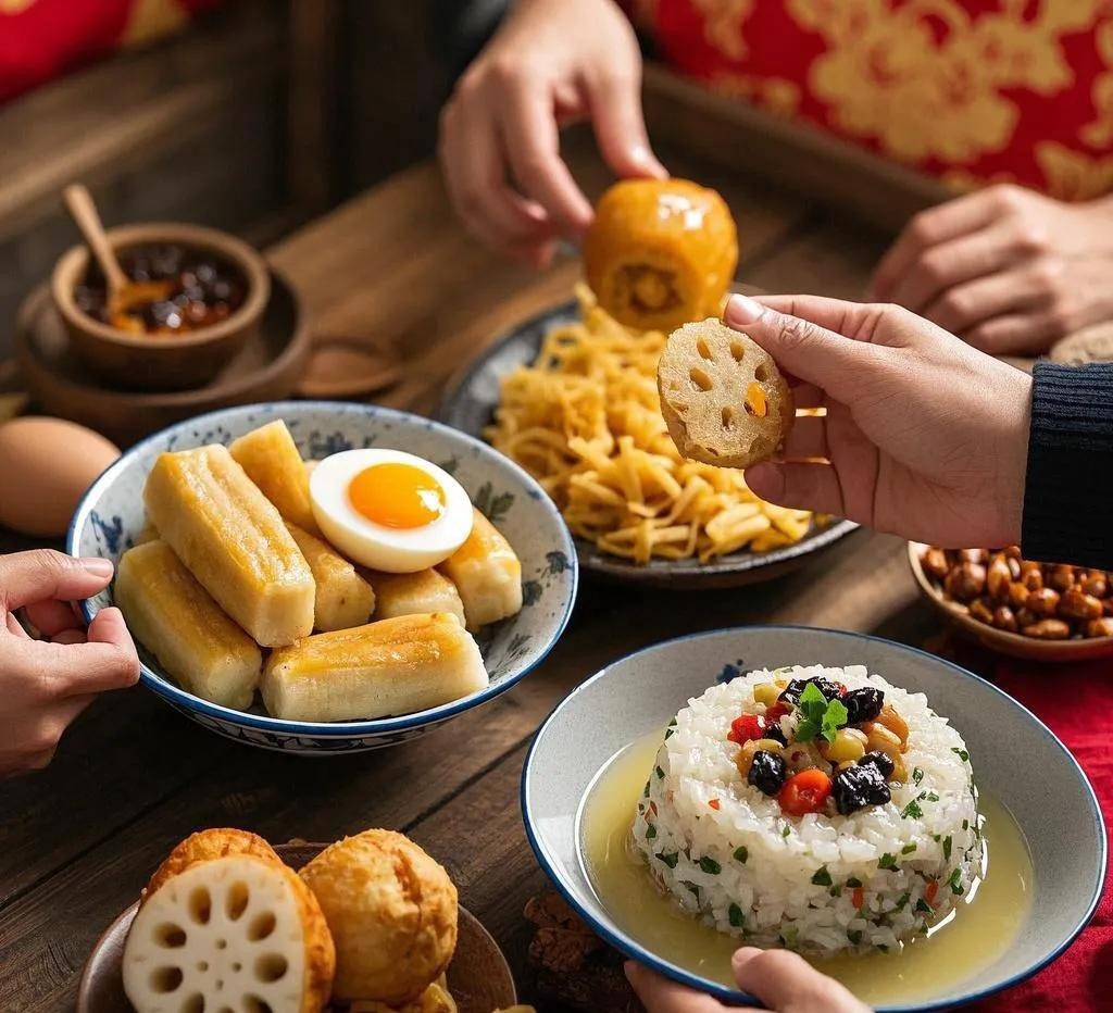 特色饮食也别具一格,一些地区有吃年糕的习俗,取年年高升之意;有的地方吃鸡蛋和油面,寓意财源滚滚;还有吃莲藕代表财路通达,吃八宝饭祈求八方来财。