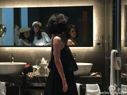 照片中的小S很是妖艳魅力,其中一张坐在地板上,打开粉饼盒看着镜子画眼线,身穿黑色连身裙,顶着一头凌乱的微卷发,不时拂起秀发,若有所思地坐在原地,搭配上烟熏妆,模样相当颓废冷艳。