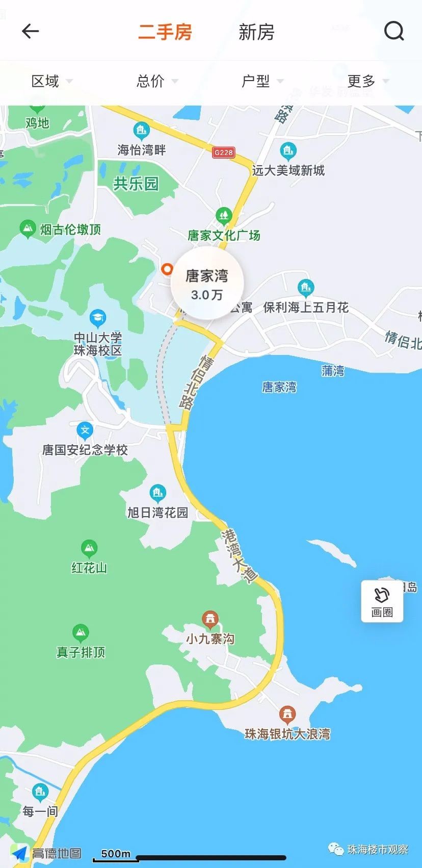 唐家湾在幸福里app上查询到的均价3万(新房格力海岸6期均价是4万)