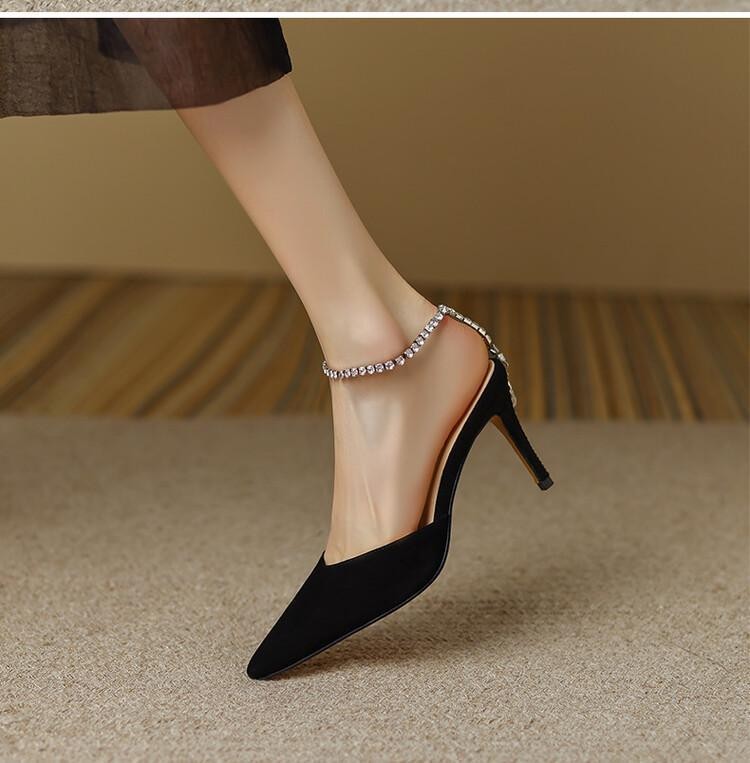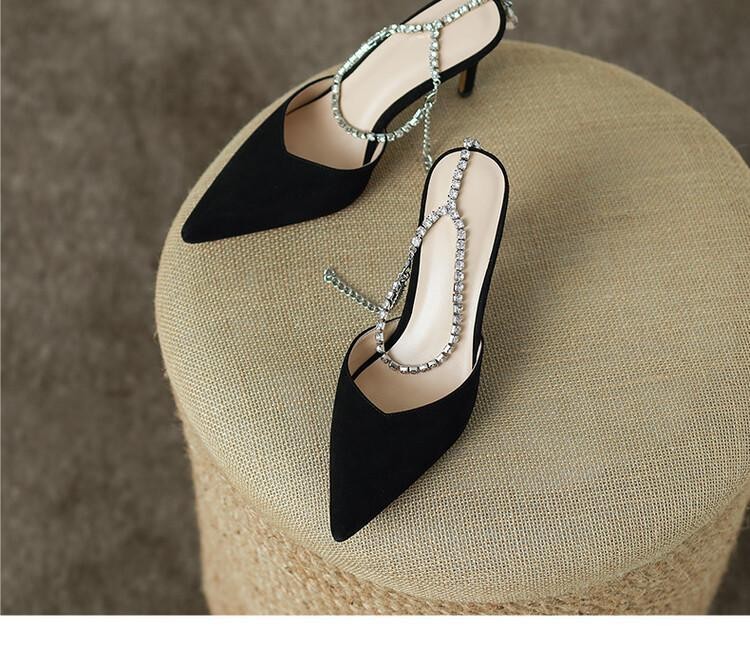 优雅水钻链条后空高跟鞋