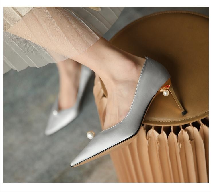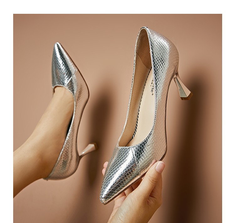 银色尖头高跟鞋