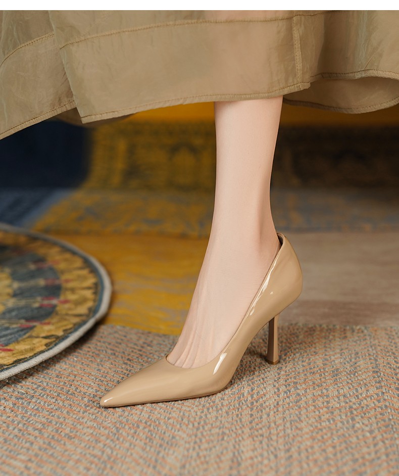 要说女人味的高跟鞋,不一定是多性感或者多迷人的款式,这种简单经典的款式才是真正具有女性气质,色系好看易搭配,比裸色深一点,比卡其淡一点,标准的8cm鞋跟,通勤味道满满。