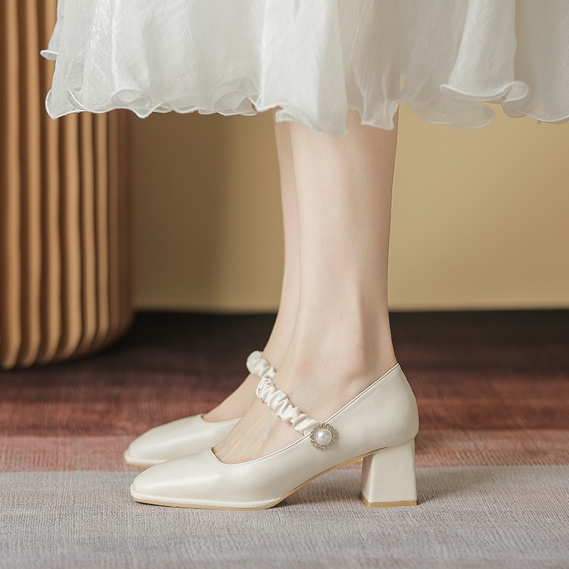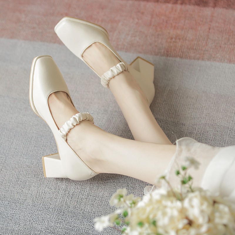 女人味的鞋子不一定是细跟,这种粗跟的玛丽珍鞋,也是非常优雅的感觉,白色非常好看养眼,具有仙女风的褶皱缎面,不会掉跟,这真的是一双四季都可穿的温柔鞋子。