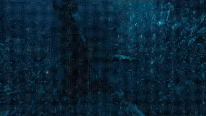 法国船长好像特别恨活人,主角团和古猜下水之后,他的幽灵多次作祟,先是盖着古猜身上的图案,然后又引鲨鱼攻击他们,给众人制造不少麻烦。