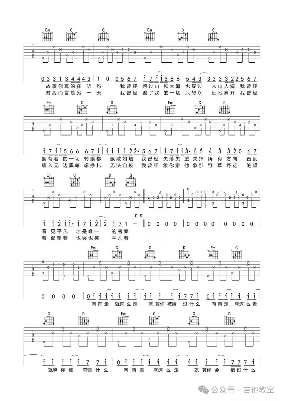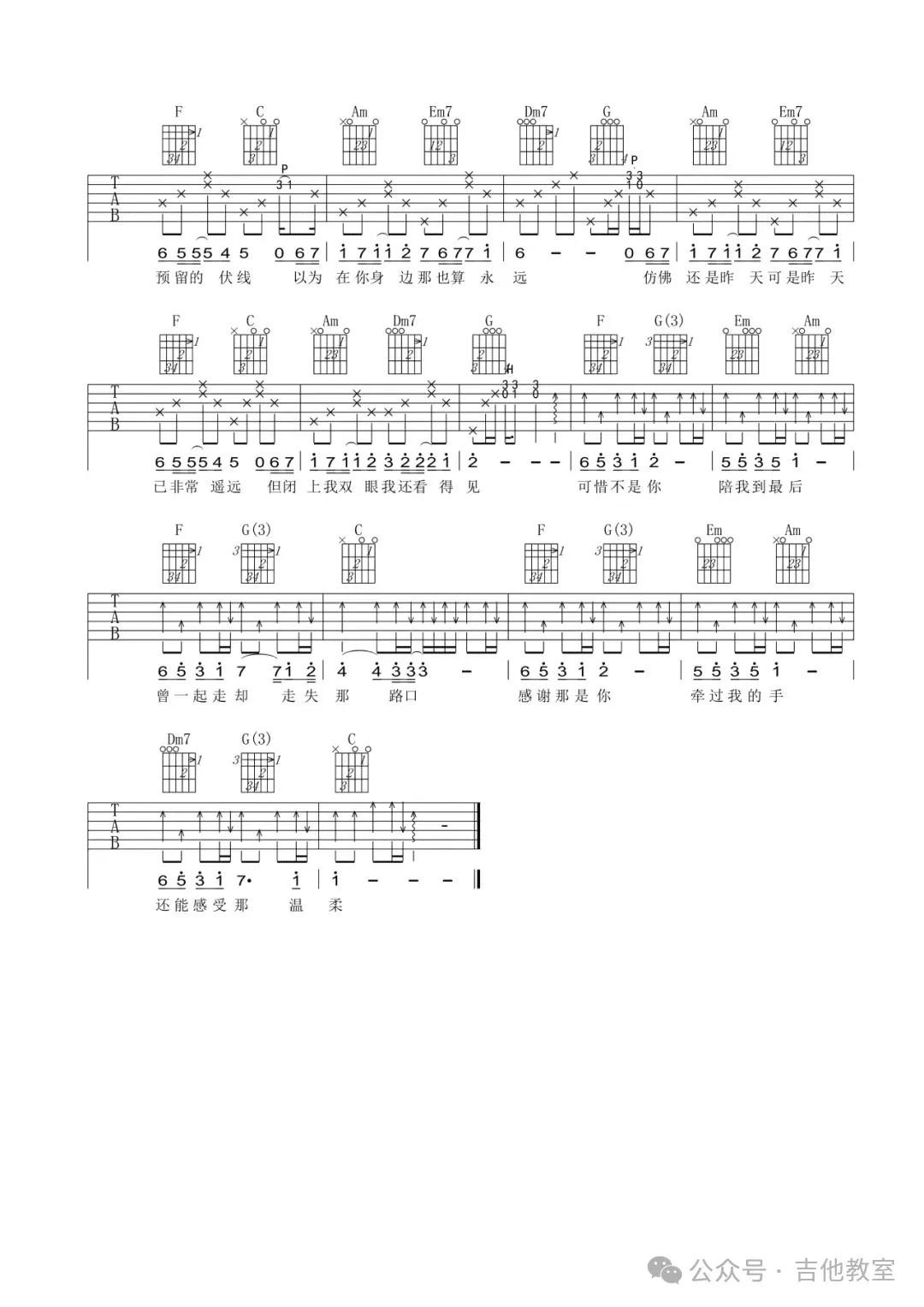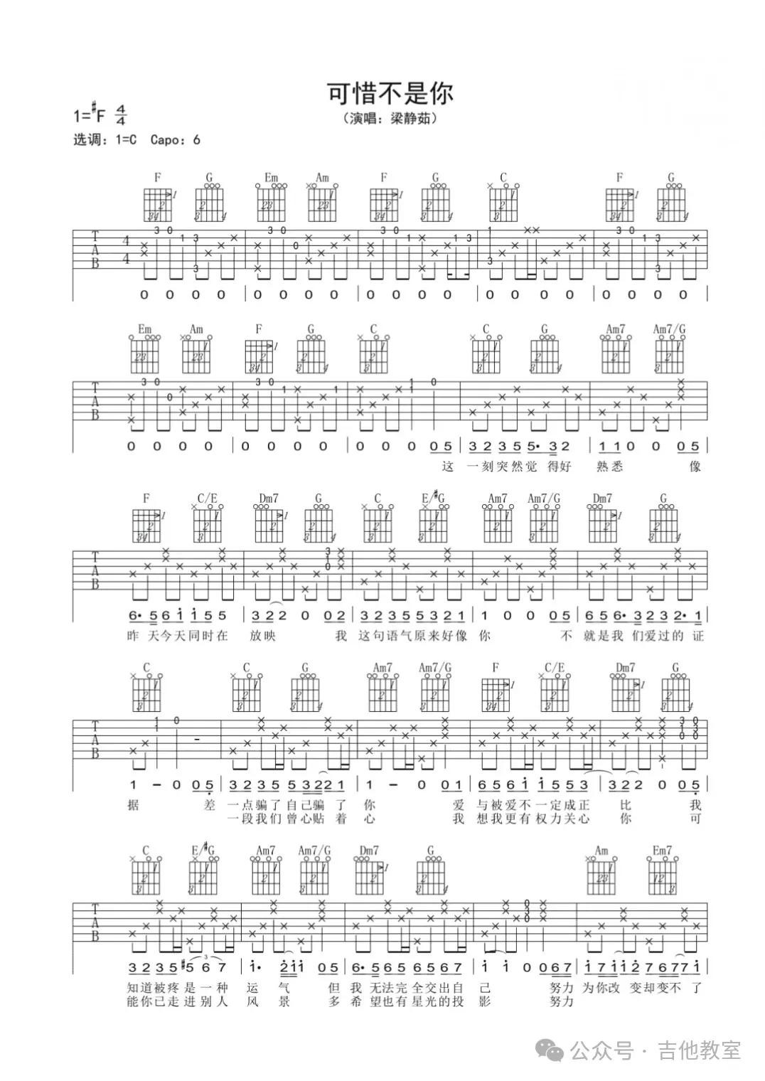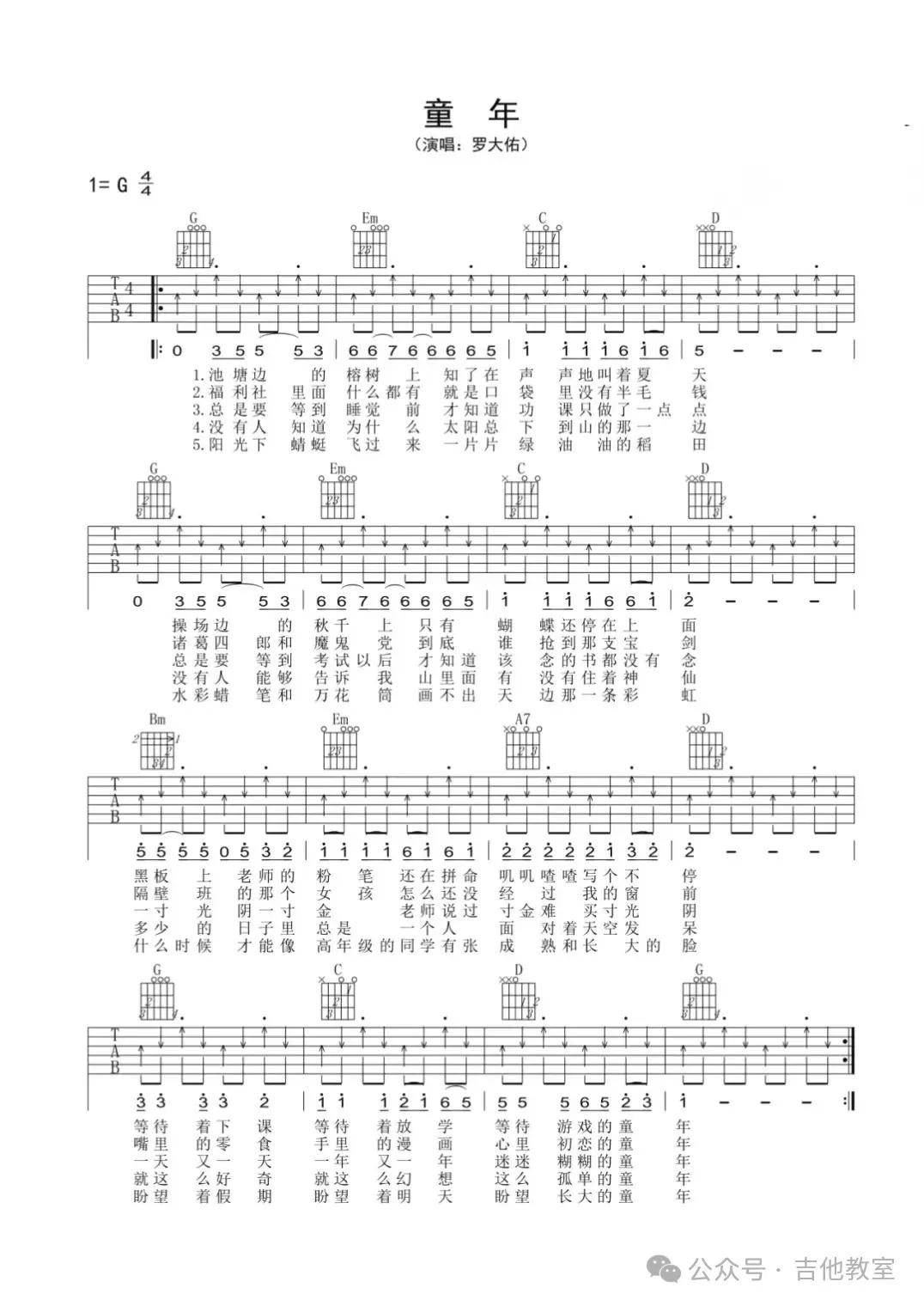 这首歌几乎是人人都会哼唱的旋律,简单的C、G、Am、F和弦组合,非常适合作为吉他学习的第一首歌。