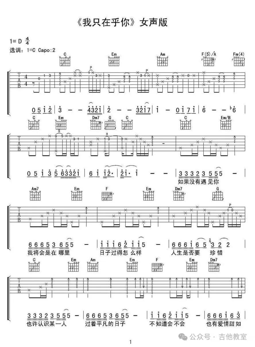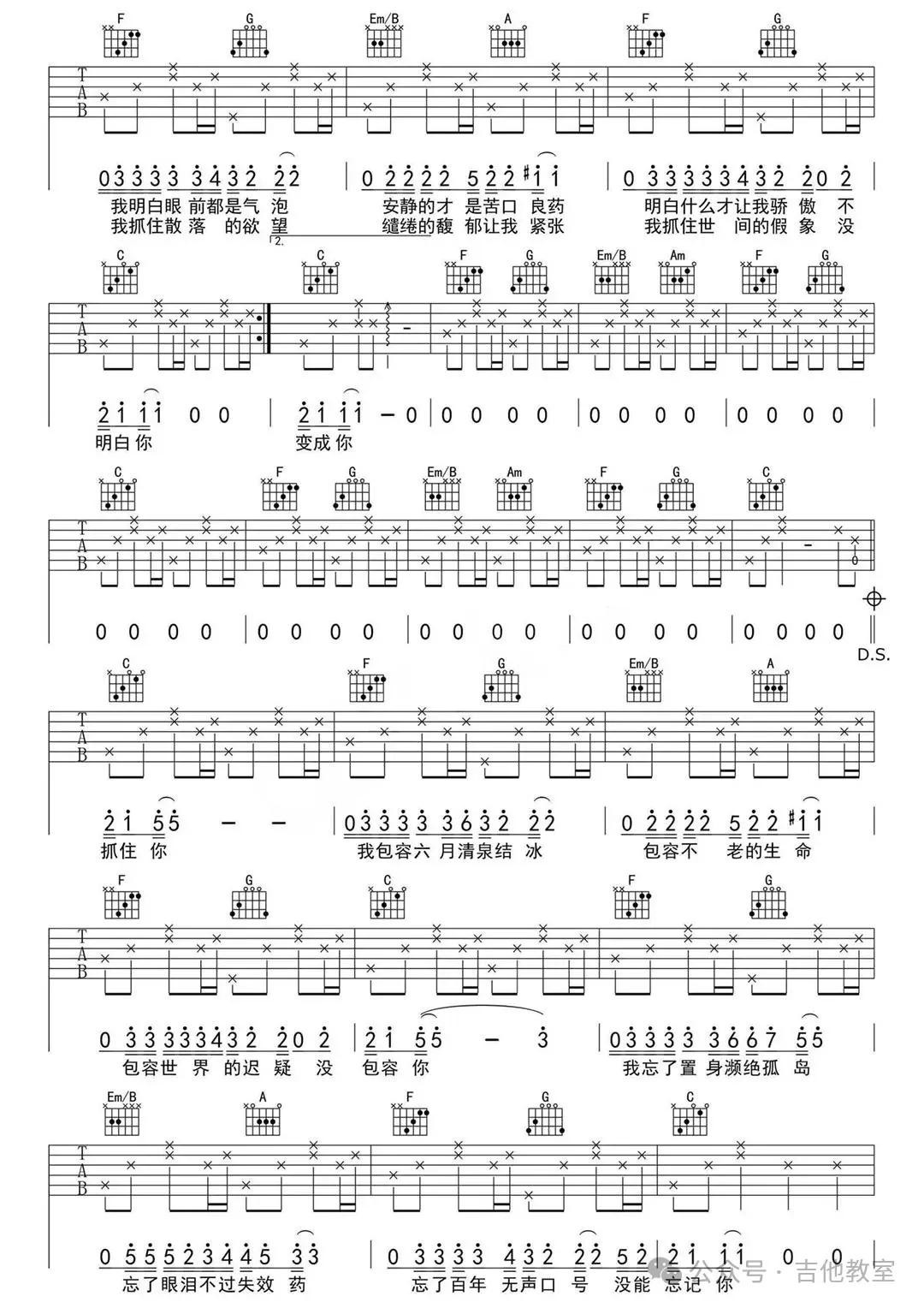 深情的歌词配以简单的和弦,适合练习情感投入和表现力。