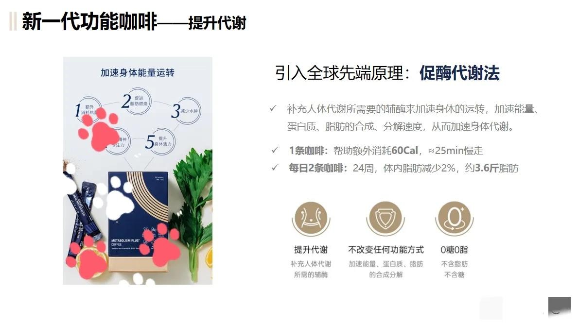 某牌代谢咖啡中含有多种活性成分,在到达体内后会激发酶的活性以及更多酶量,从而提高代谢。