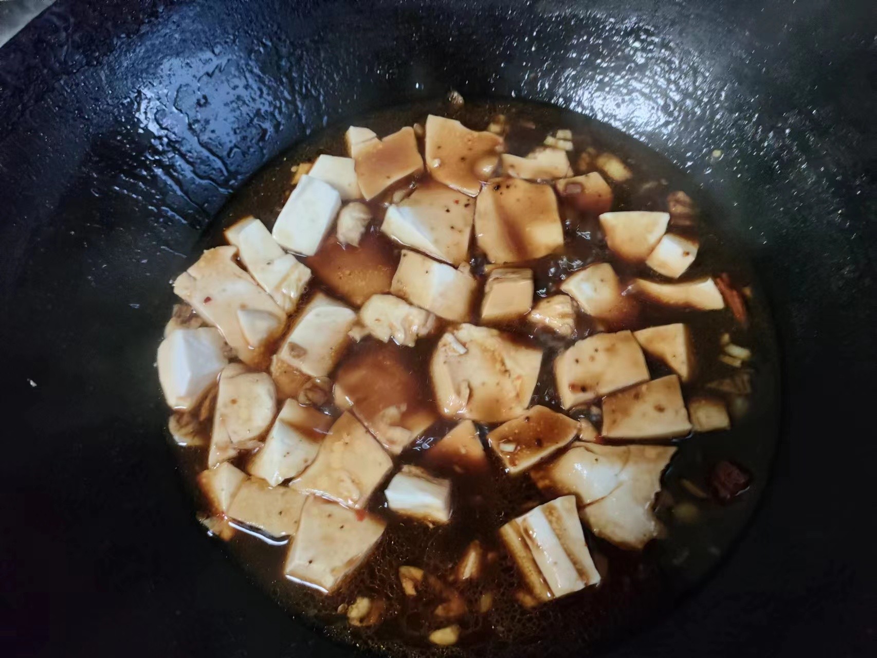 5.倒入豆腐,炖三五分钟,稍收汁。