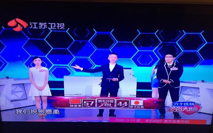 2月17日晚,在江苏卫视播出的《最强大脑》中,国台湾选手钟恩柔抵住强压,战胜日本速算兄弟,入驻中国脑力名人堂,进军国际速算PK。