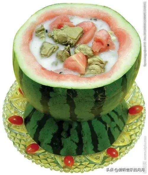 好啦,一道美味的西瓜盅就做好了。希望大家在夏天可以尝试一下这个做法,相信你们一定会爱上它的。