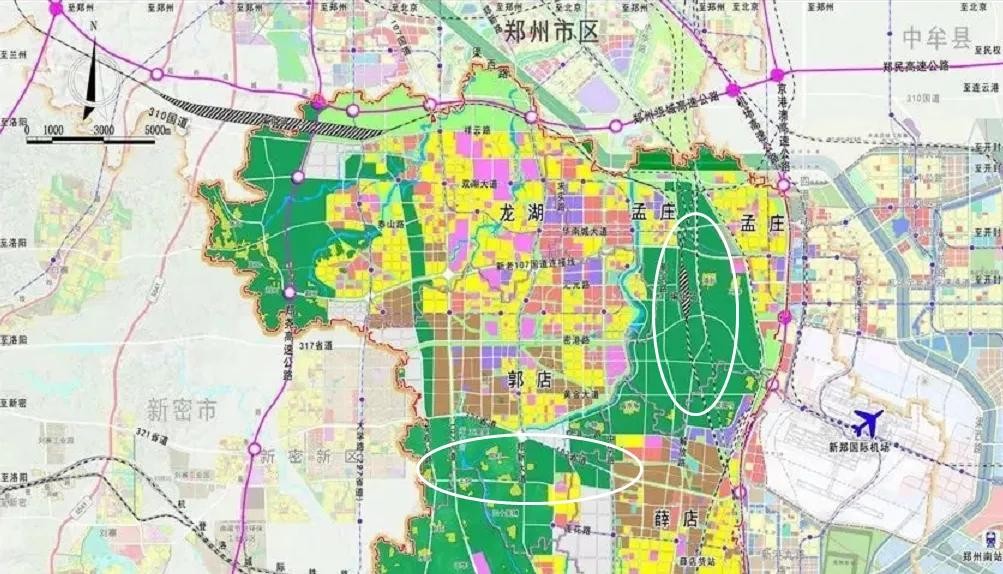 先说孟庄;孟庄总体面积并不小,但是中间几公里的铁路、绿地带将孟庄完全切开,东部与航空港毗邻,西部与龙湖交接,因此一般也称孟庄西部片区为南龙湖。