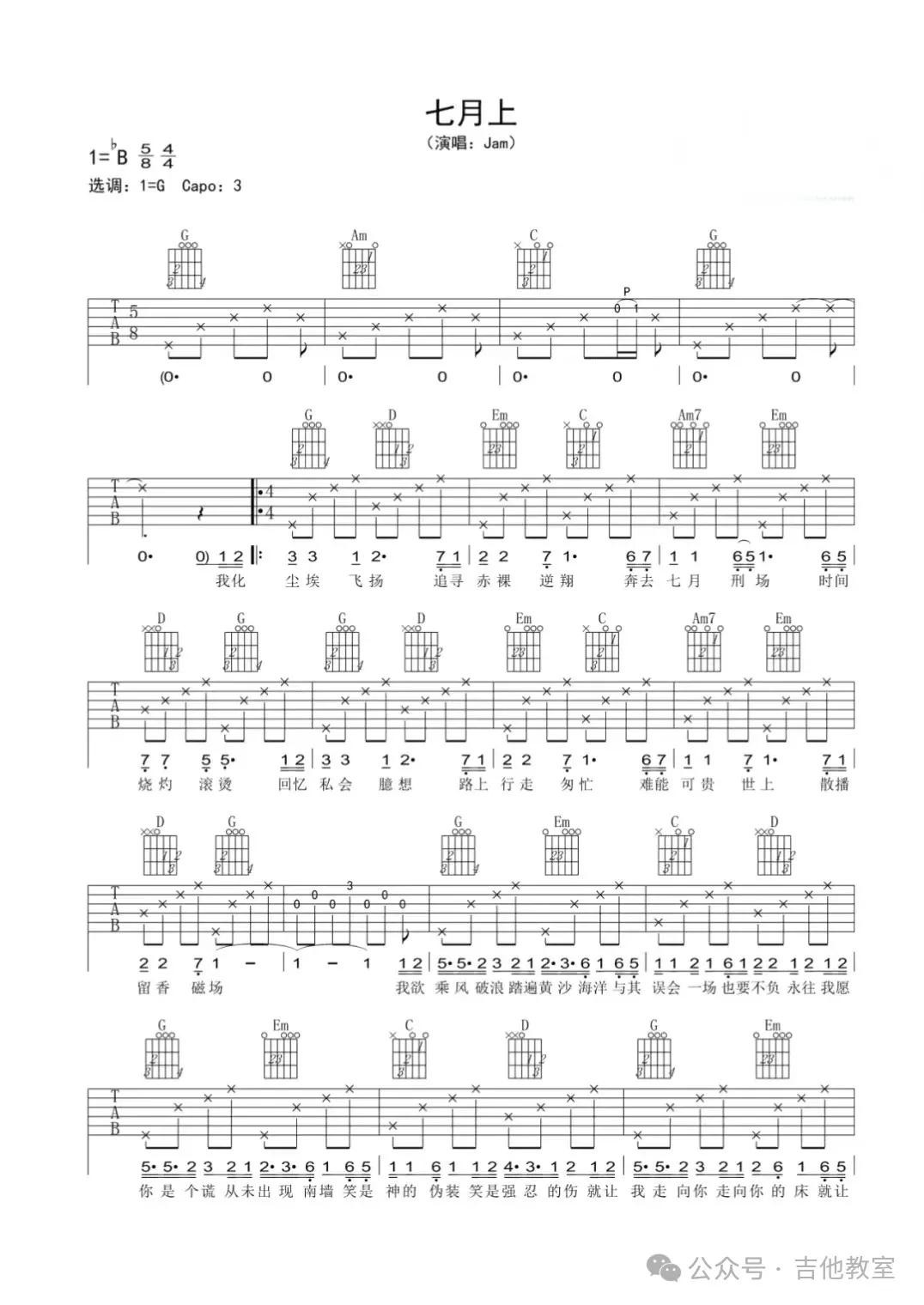 《七月上》吉他谱