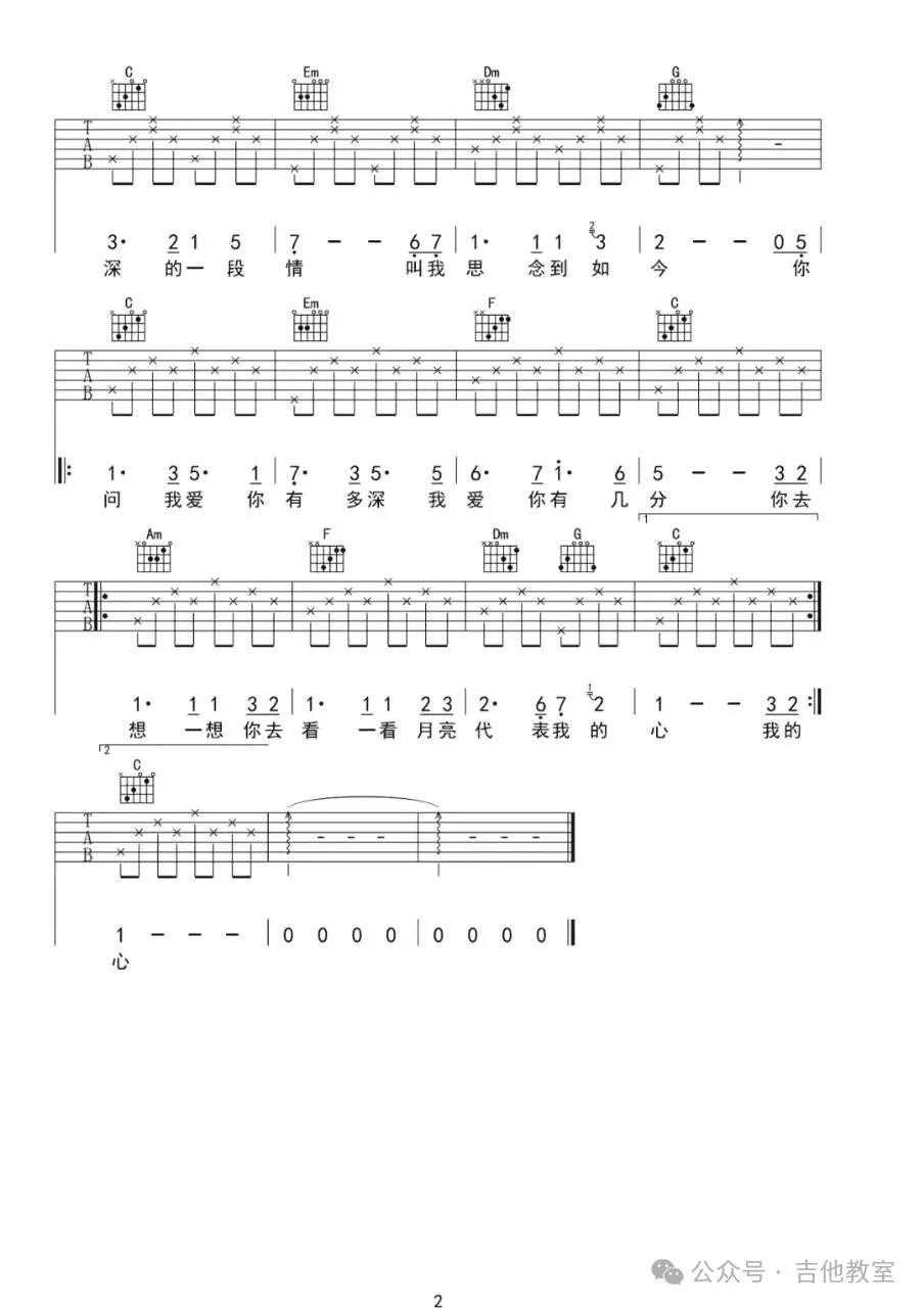 邓丽君《月亮代表我的心》吉他谱