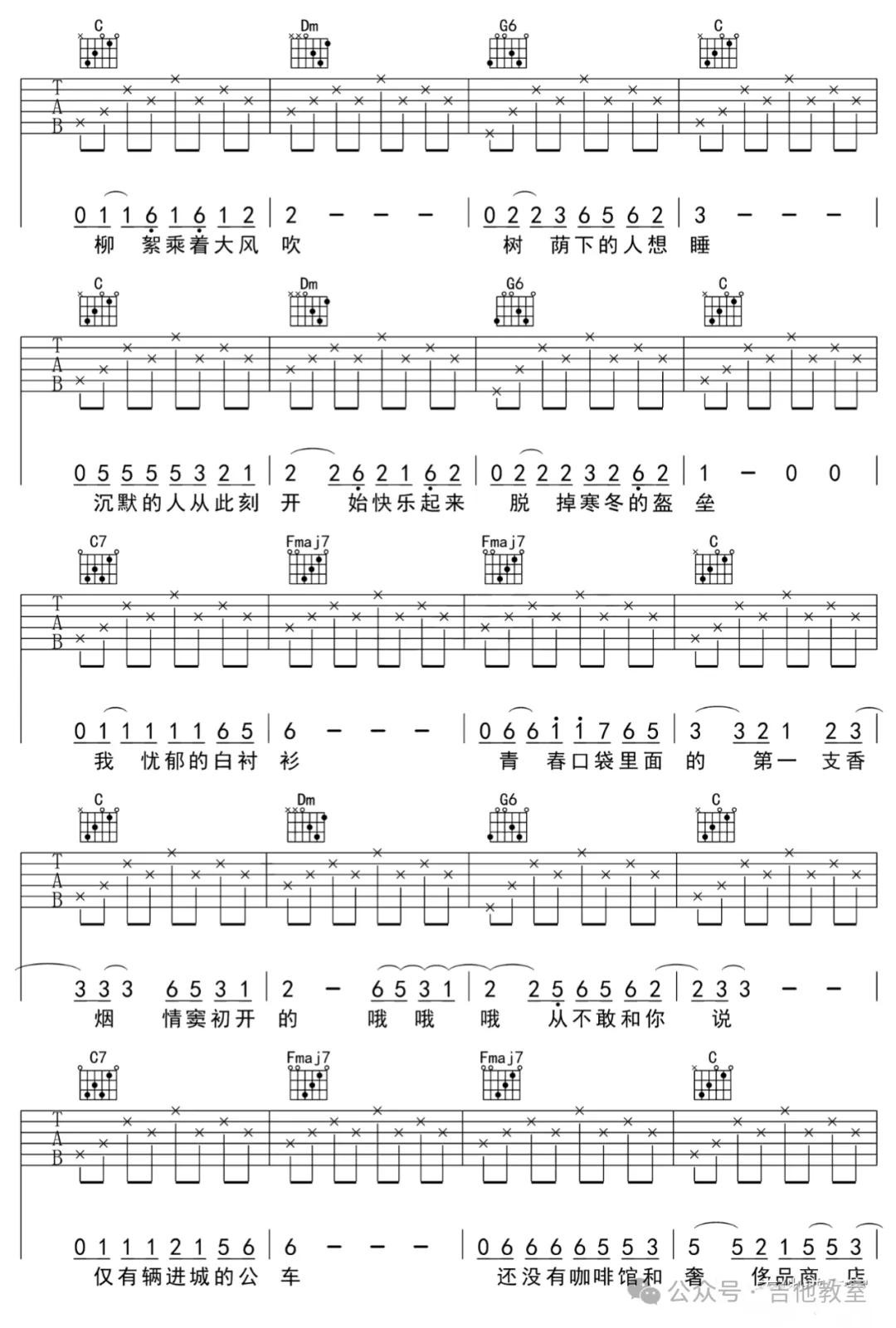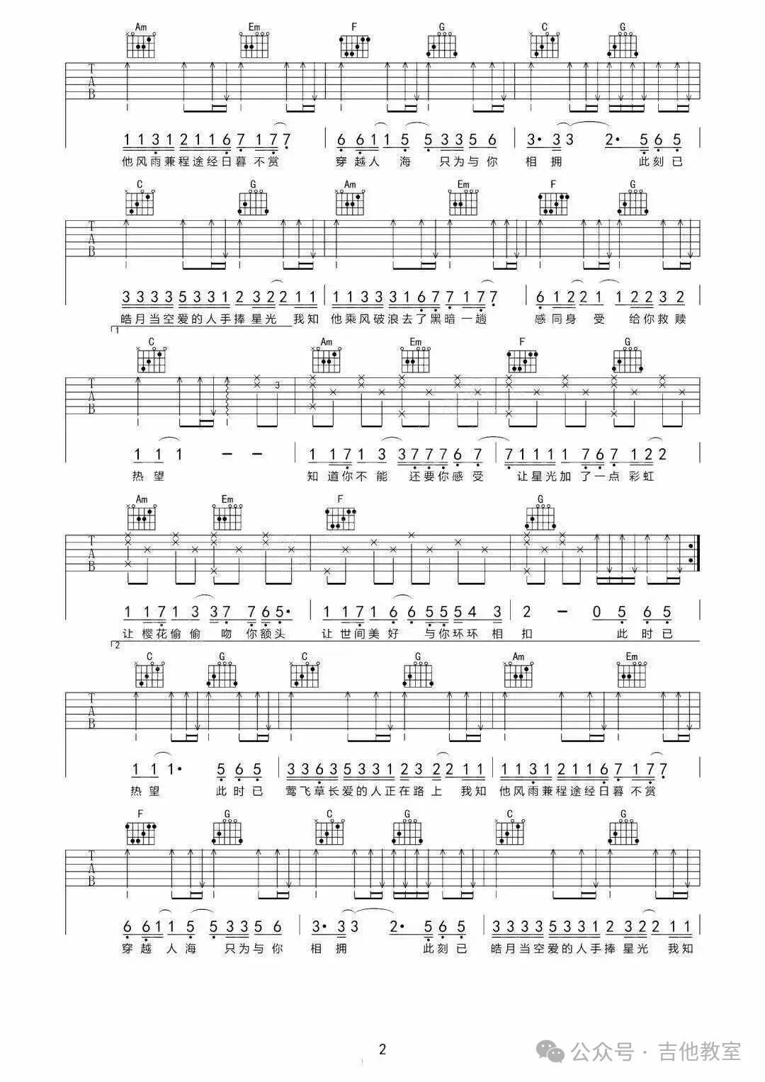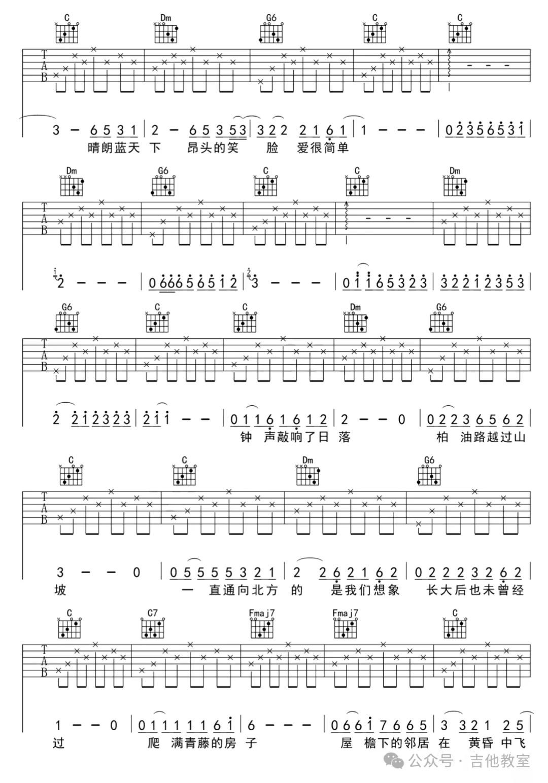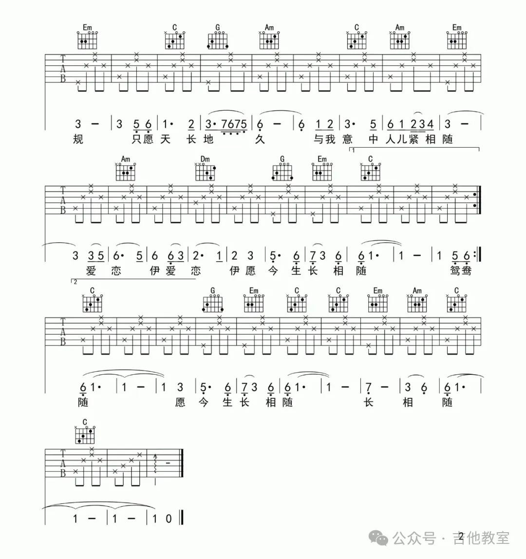 这首歌曲和弦不多,旋律悠扬,适合初学者感受吉他音乐的魅力。