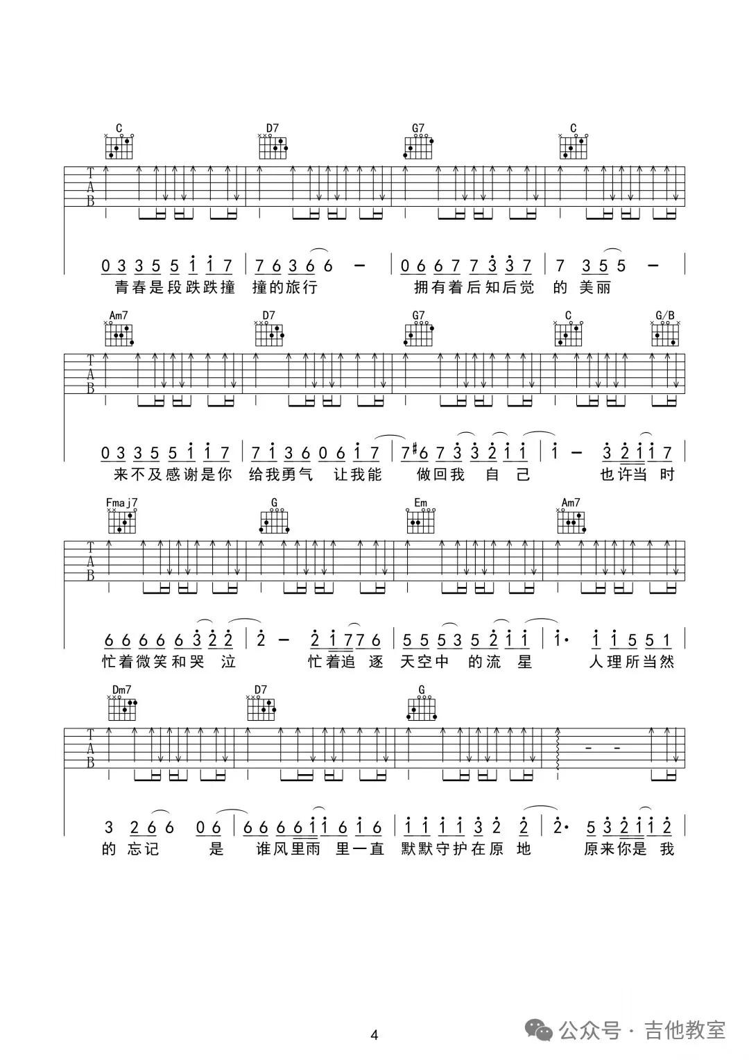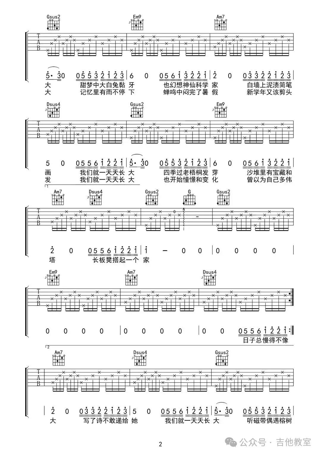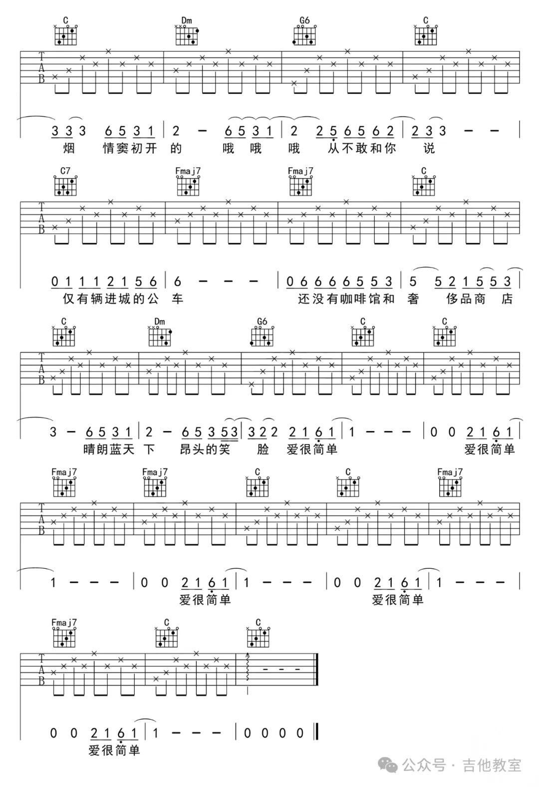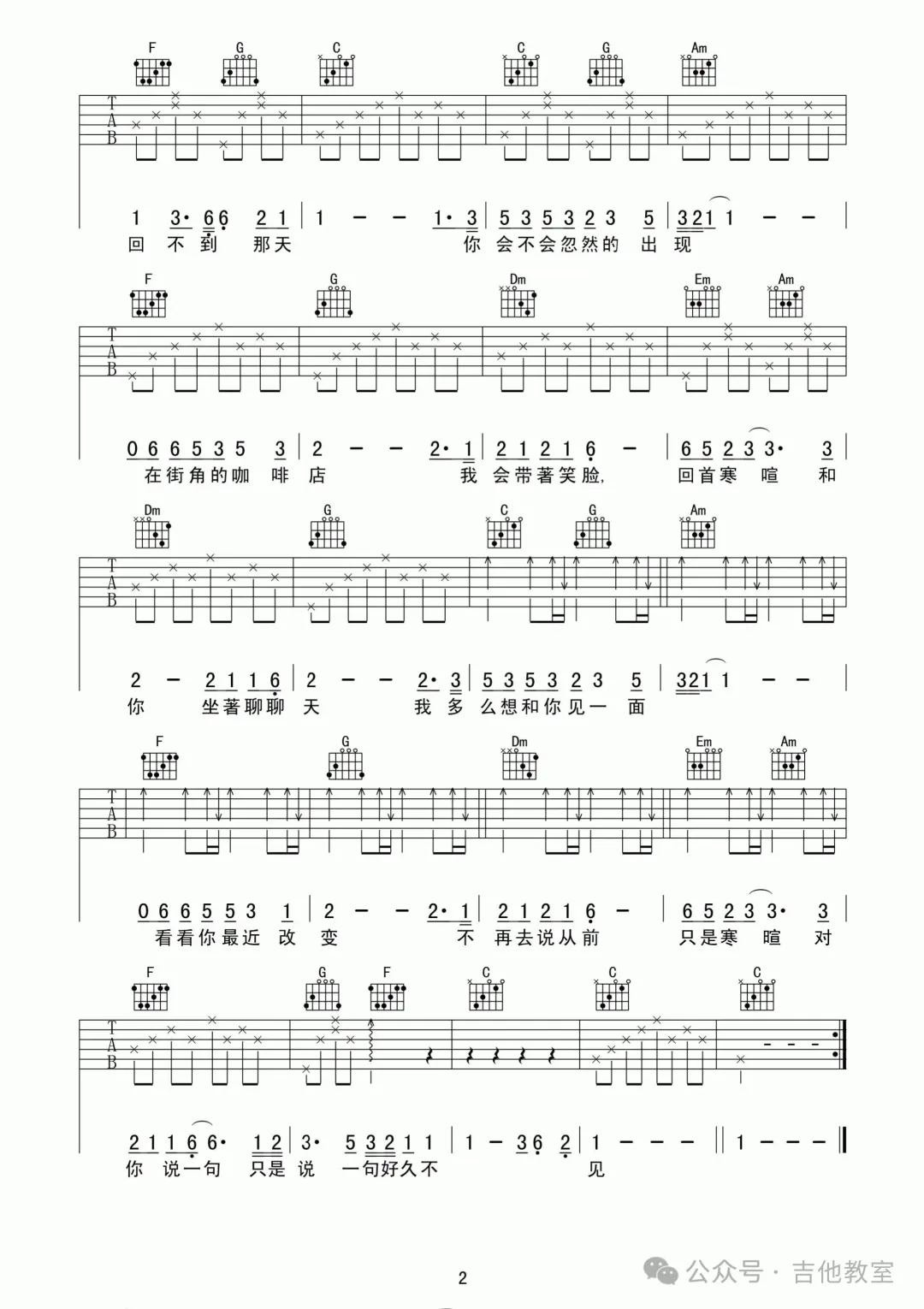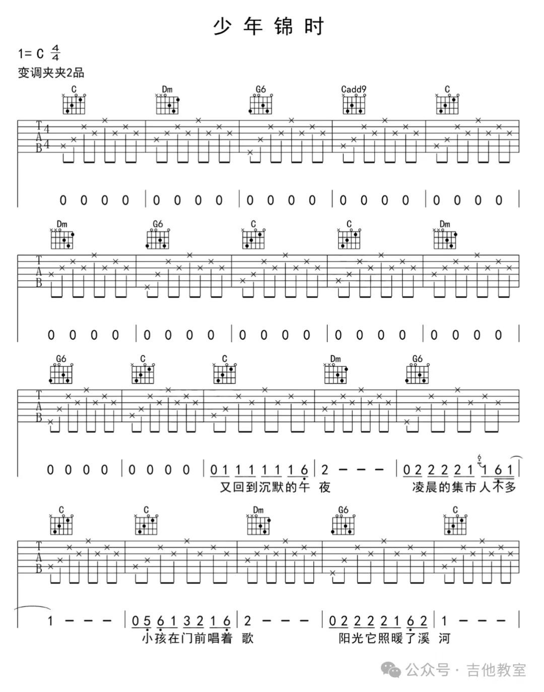 这首歌曲和弦不多,旋律悠扬,适合初学者感受吉他音乐的魅力。