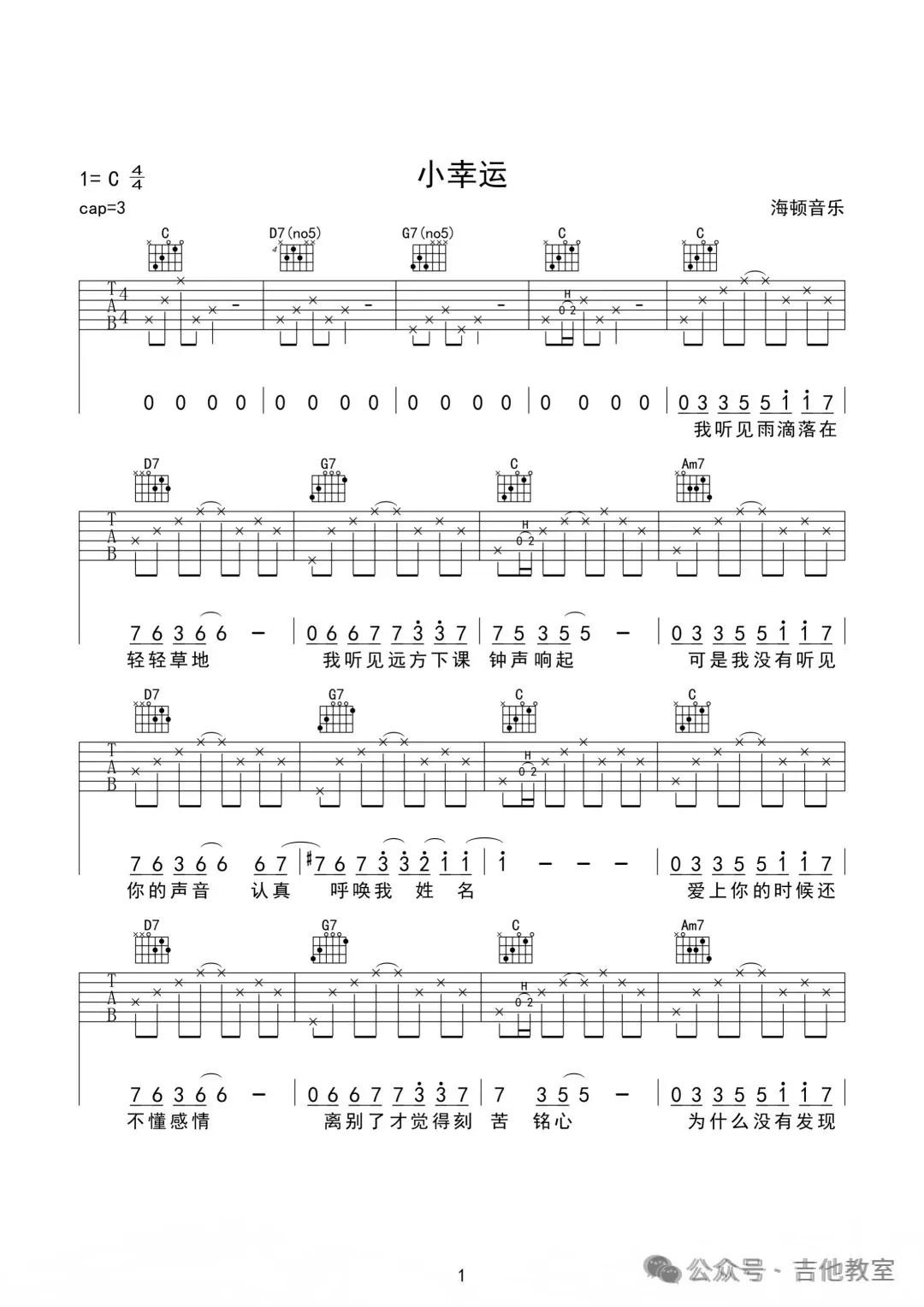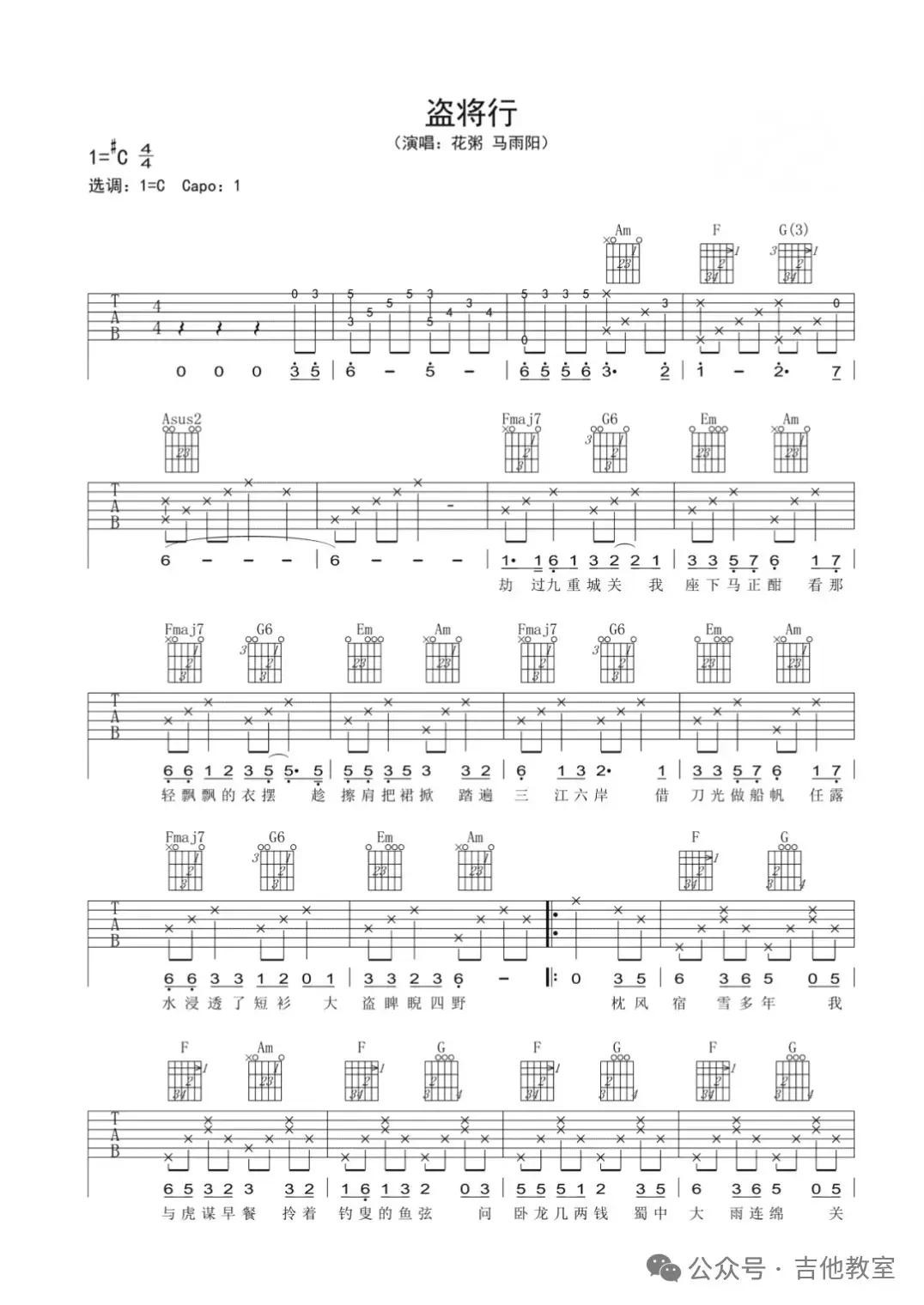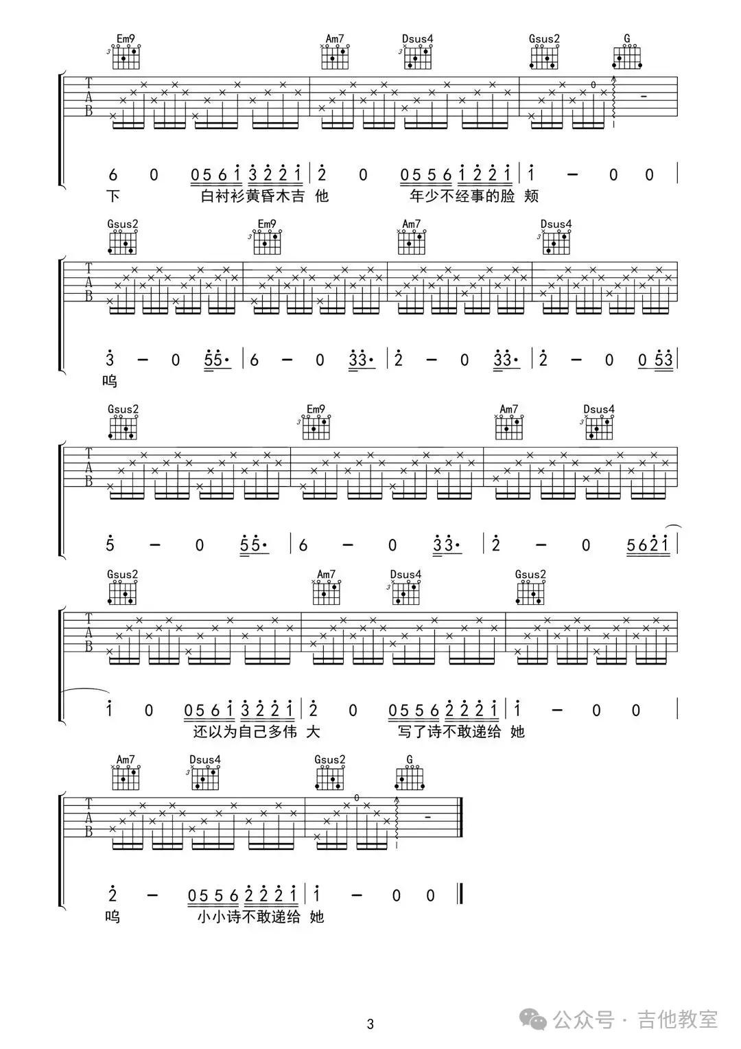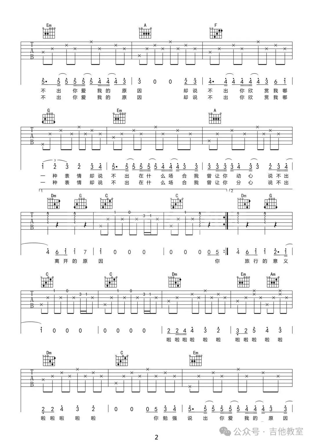 这首歌曲和弦不多,旋律悠扬,适合初学者感受吉他音乐的魅力。