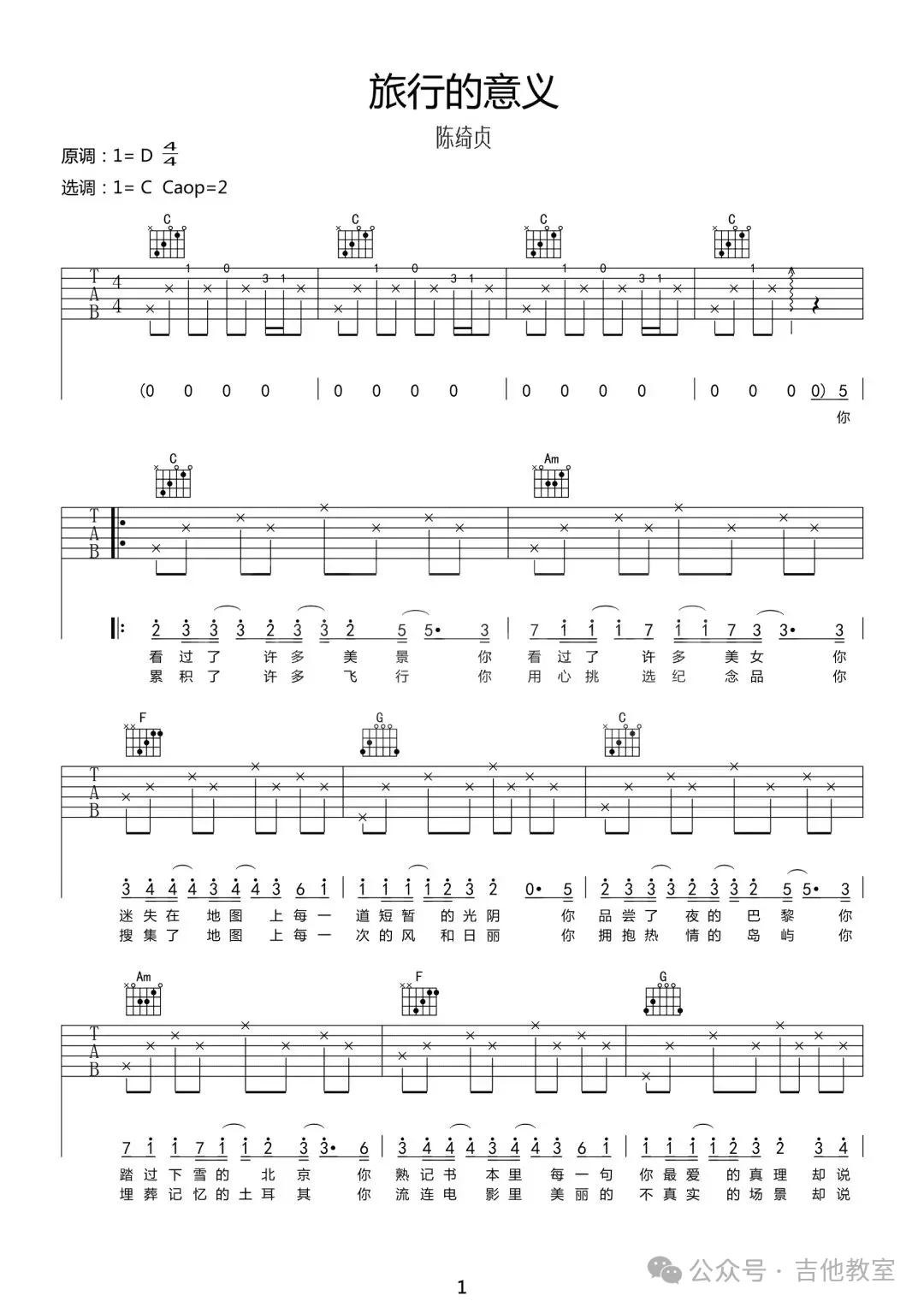 《旅行的意义》吉他谱
