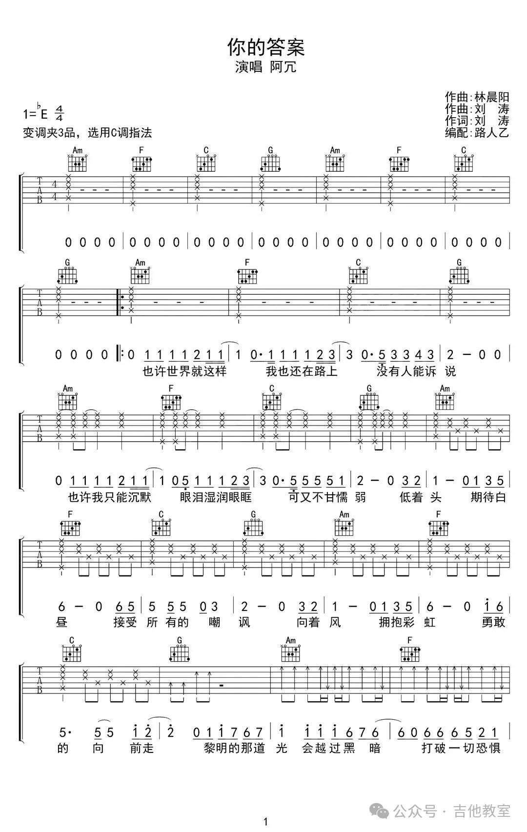 《你的答案》吉他谱