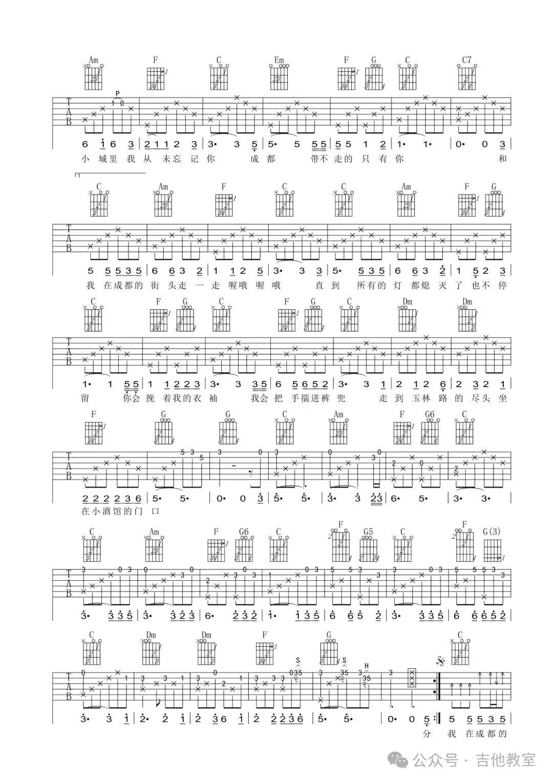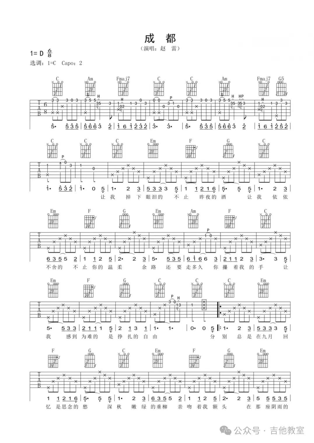 赵雷《成都》吉他谱