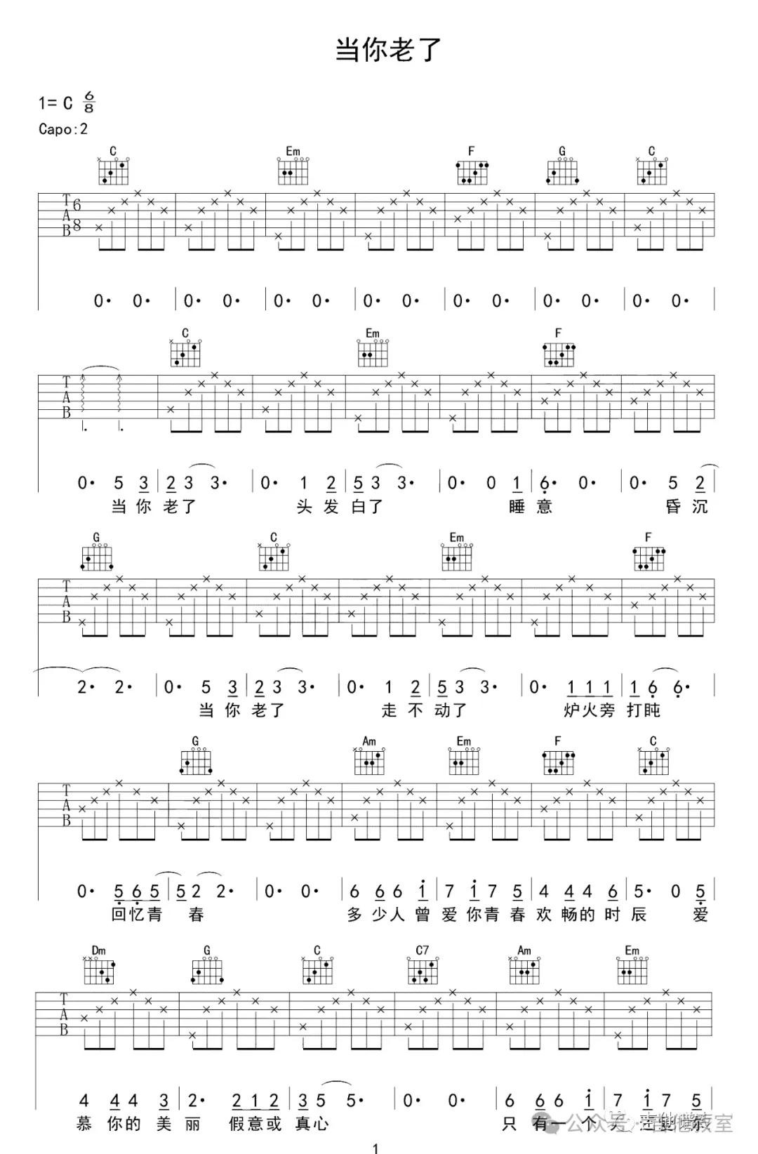 《当你老了》吉他谱