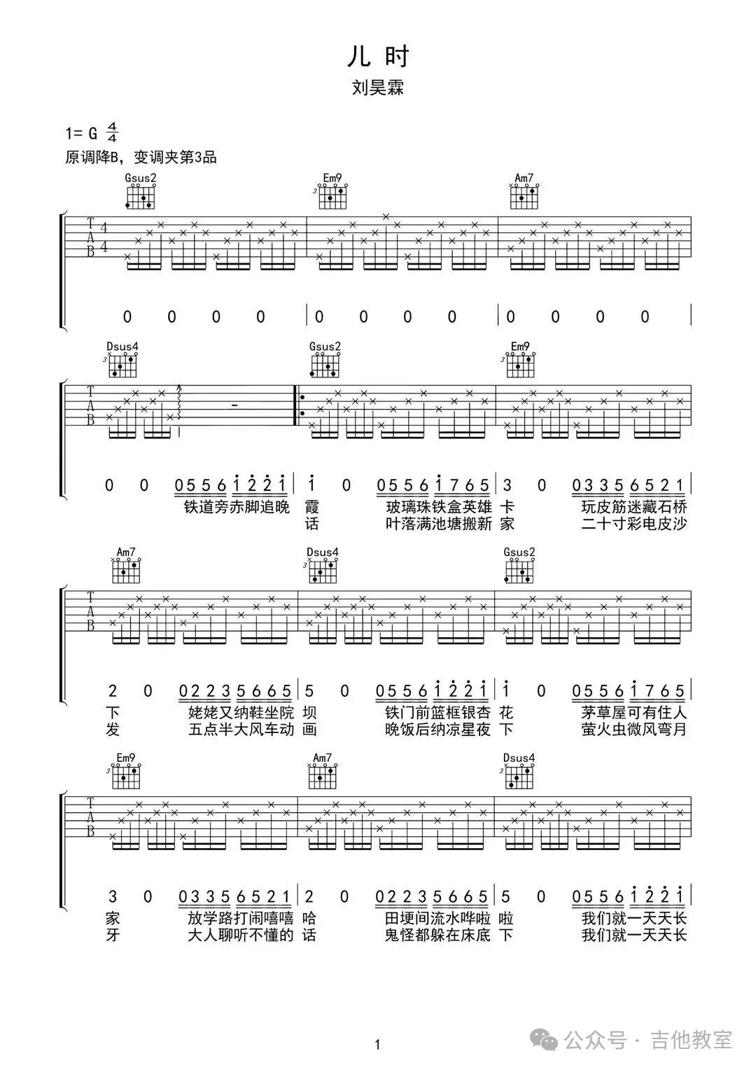 《儿时》吉他谱