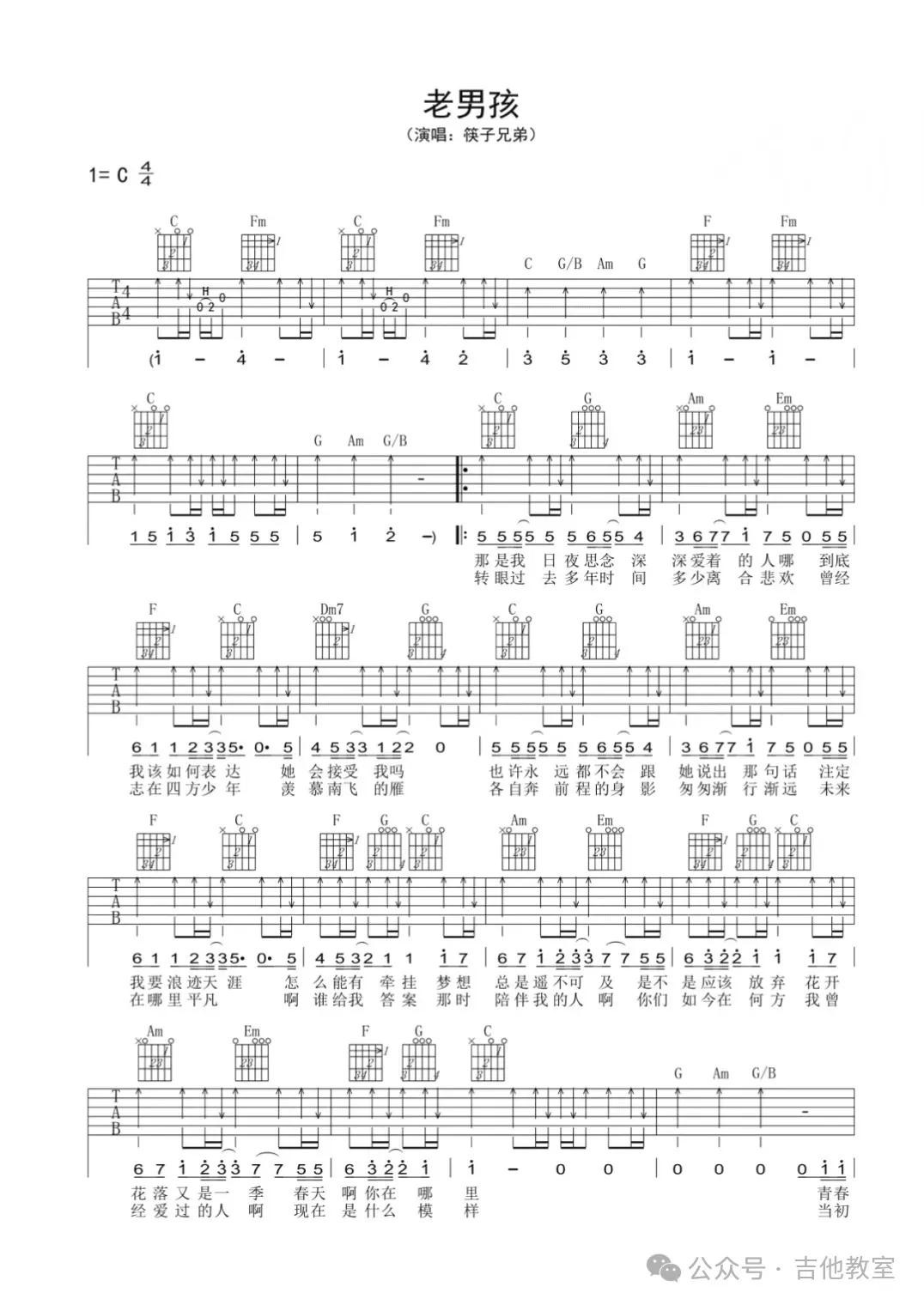 筷子兄弟《老男孩》吉他谱