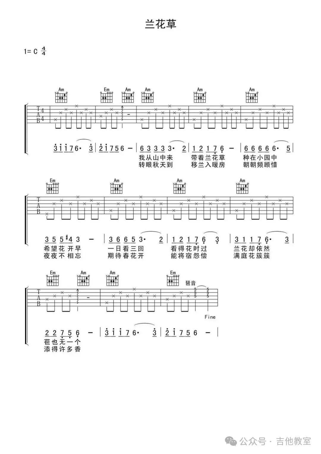 《兰花草》吉他谱