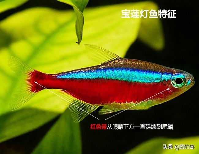 宝莲灯鱼容易和红绿灯鱼混淆,因为两者的价格差别还蛮大,所以有的商家会拿便宜的红绿灯鱼来冒充宝莲灯鱼,忽悠新人朋友,之前咱们鱼友就有遇到过。其实最好的辨别大家看腹部红色大部分,宝莲灯的红色是从嘴巴一直延伸到尾巴的,而红绿灯只有从腹部延伸到尾巴而已。