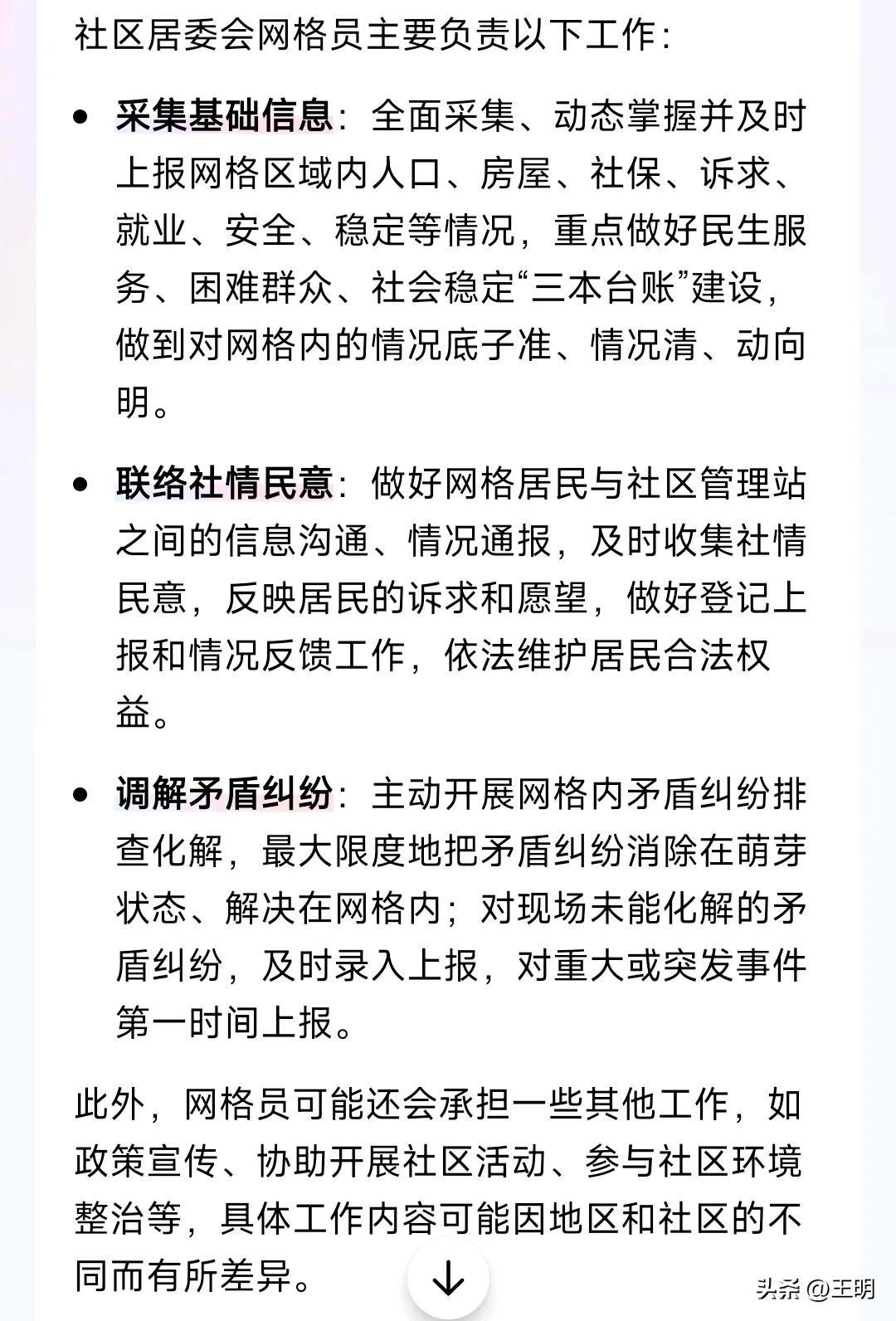 1,网格员我了解,真的没啥用,没网格的时候工作一样干的好,有网格就是国家多了份负担,个人多了份收入而已,根本没有起到什么实质性的工作。现在业主都是花钱买服务,感觉网格员再辛苦,也与居民没有多大关系,在小区居住近十年,与社区居委会及网格员几乎没有什么交集,甚至感觉不到他们的存在!