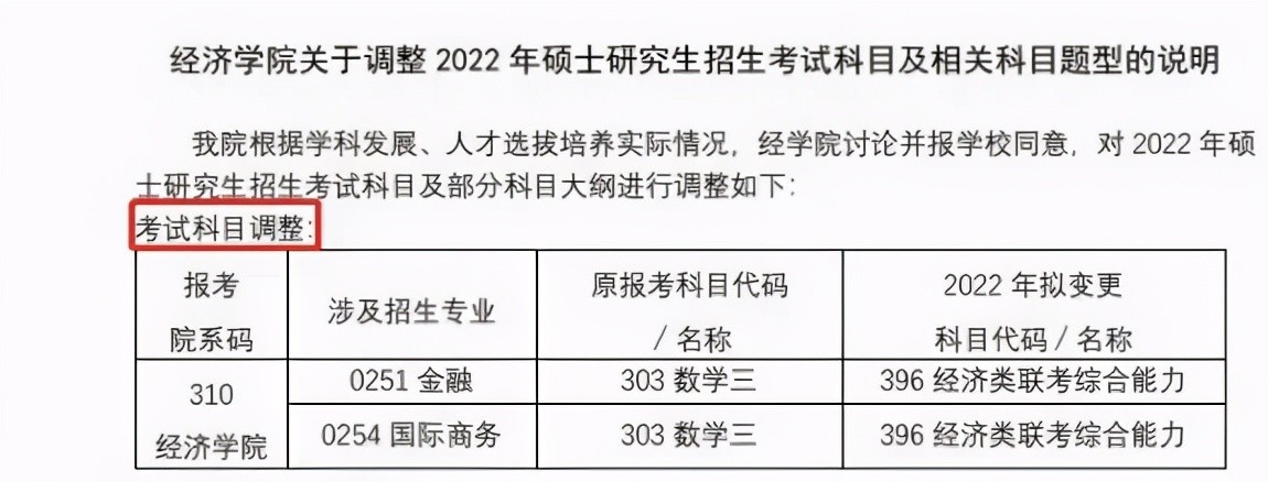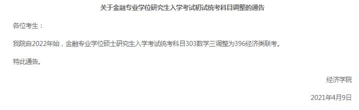 经济学院自2022年始,金融专业学位硕士研究生入学考试统考科目303数学三调整为396经济类联考。