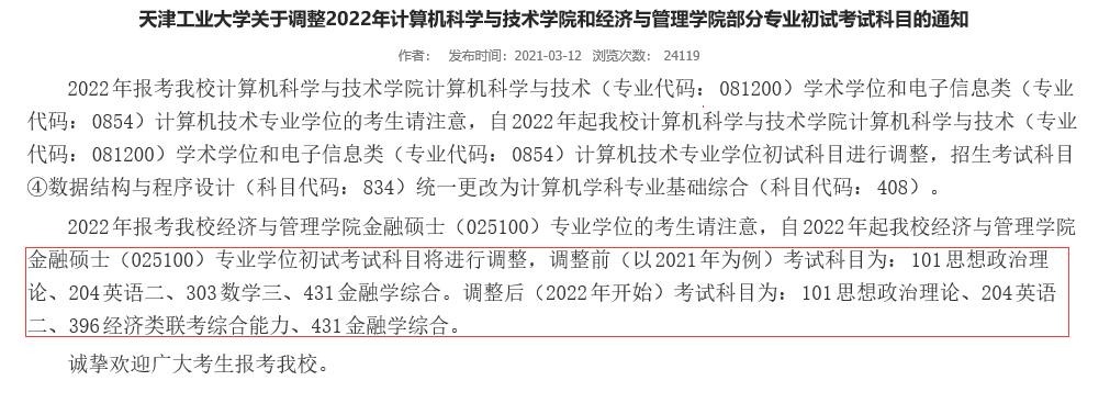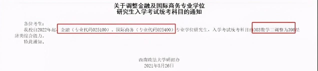 0251金融、0254国际商务:303数学三调整为396经济类联考综合能力