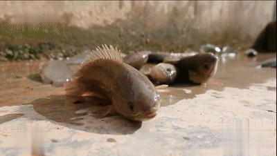 但过山鲫早已经悟透了,我命由我不由天地真理。它们就开始了放飞自我,尽情地扭动着身体,开始向着地上前进。