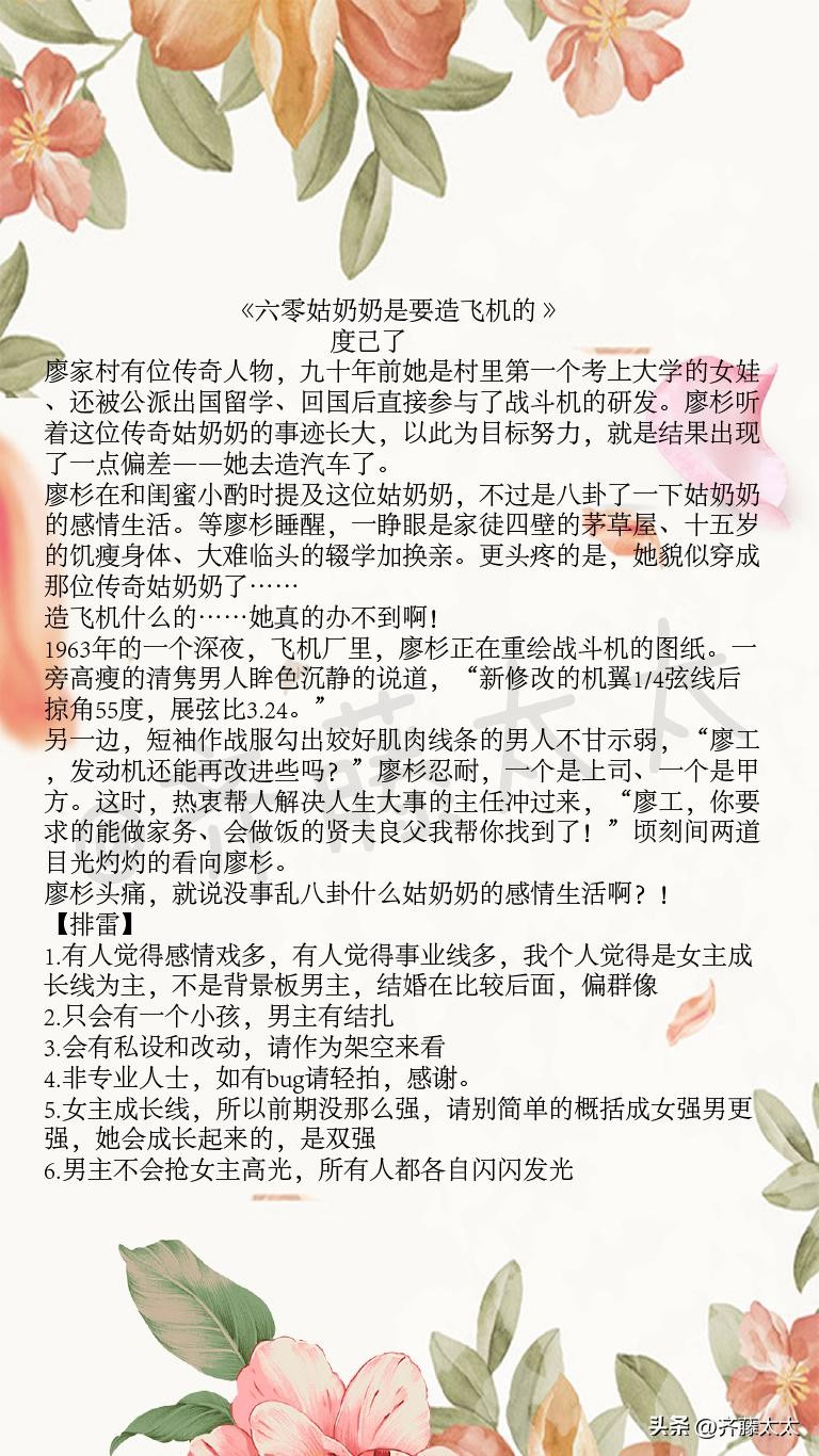 单本推荐:《六零姑奶奶是要造飞机的》清醒搞事业女主,男强女强