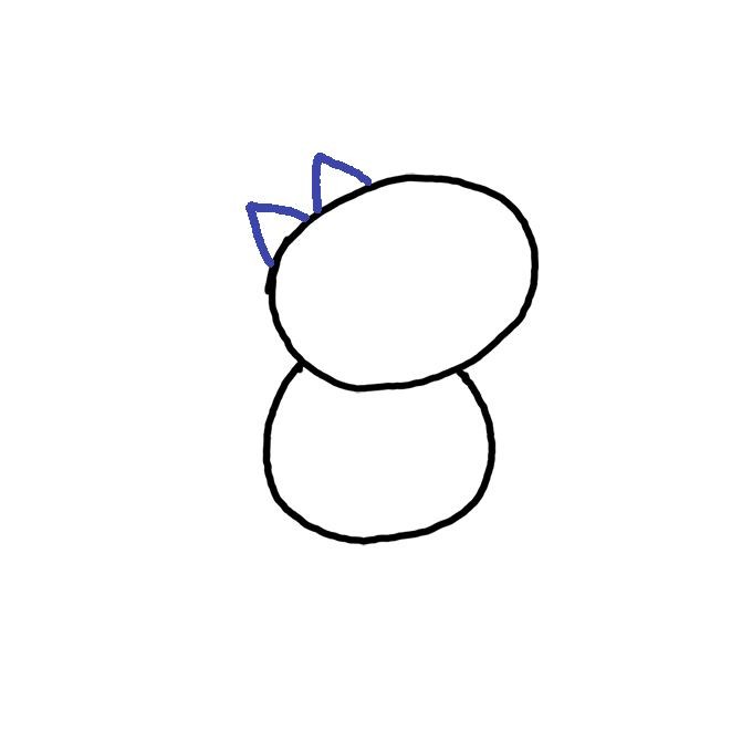 第三步:在头部上画两个倒置的V形,形成小狗丹尼的耳朵。