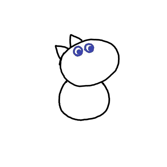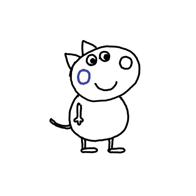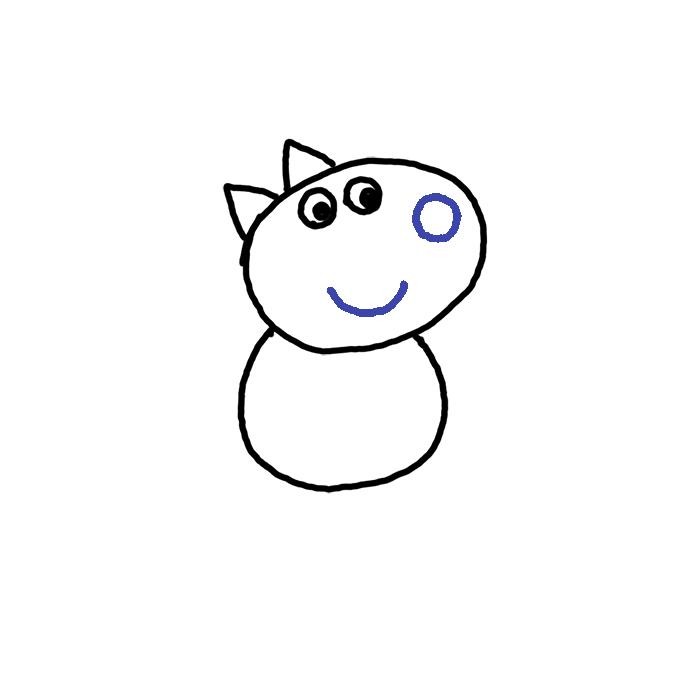 第五步:在眼睛下方画一条短曲线,形成小嘴巴。画一个圆圈,形成鼻子。