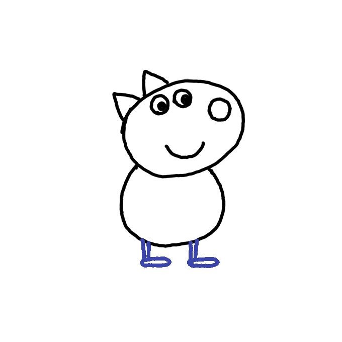 第六步:在身体下方延伸画出两组短线条,形成腿。在腿的下面画出鞋子。