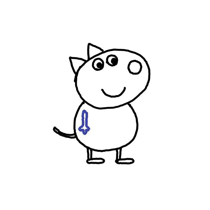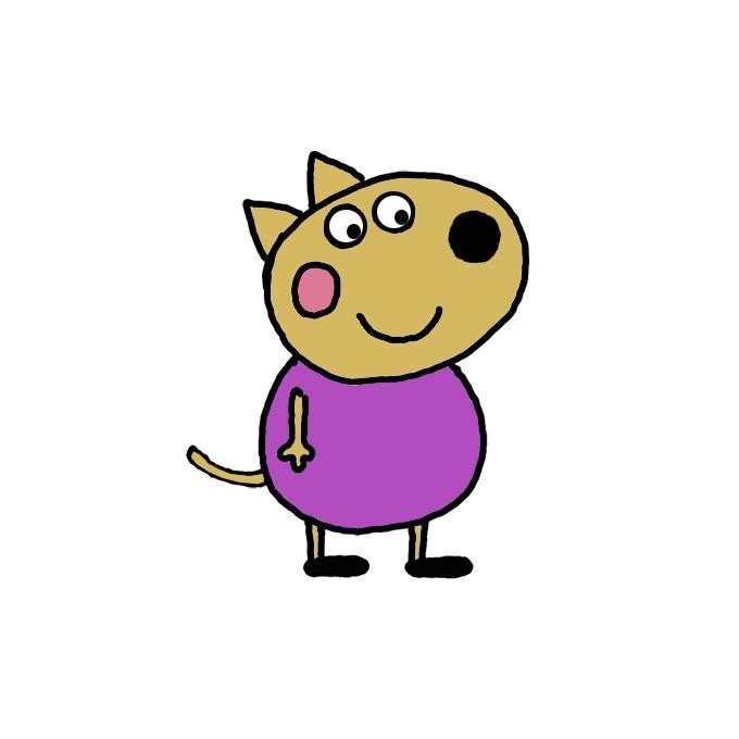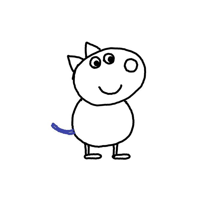 第七步:在身体的左下侧画出两条平行曲线,并让之在末端相遇,形成小狗丹尼的尾巴。